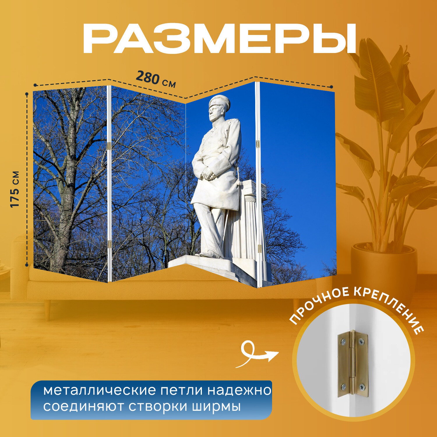 Ниже Вы можете прочитать отзывы на Ширма "Скульптура, от мольтке, памятник" перегородка для зонирования комнаты с принтом 280x175 см. на холсте, ознакомится с подробными характеристиками, посмотреть интересные обзоры и фотографии на Ширма "Скульптура, от мольтке, памятник" перегородка для зонирования комнаты с принтом 280x175 см. на холсте.