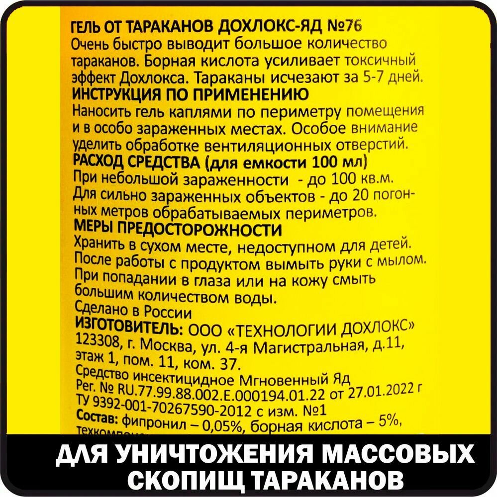 Купить Борный гель от тараканов сгинь! Яд Дохлокс №76 для уничтожения массовых скопищ тараканов: флакон 100 мл