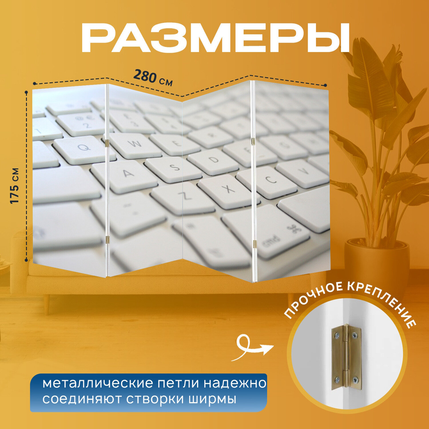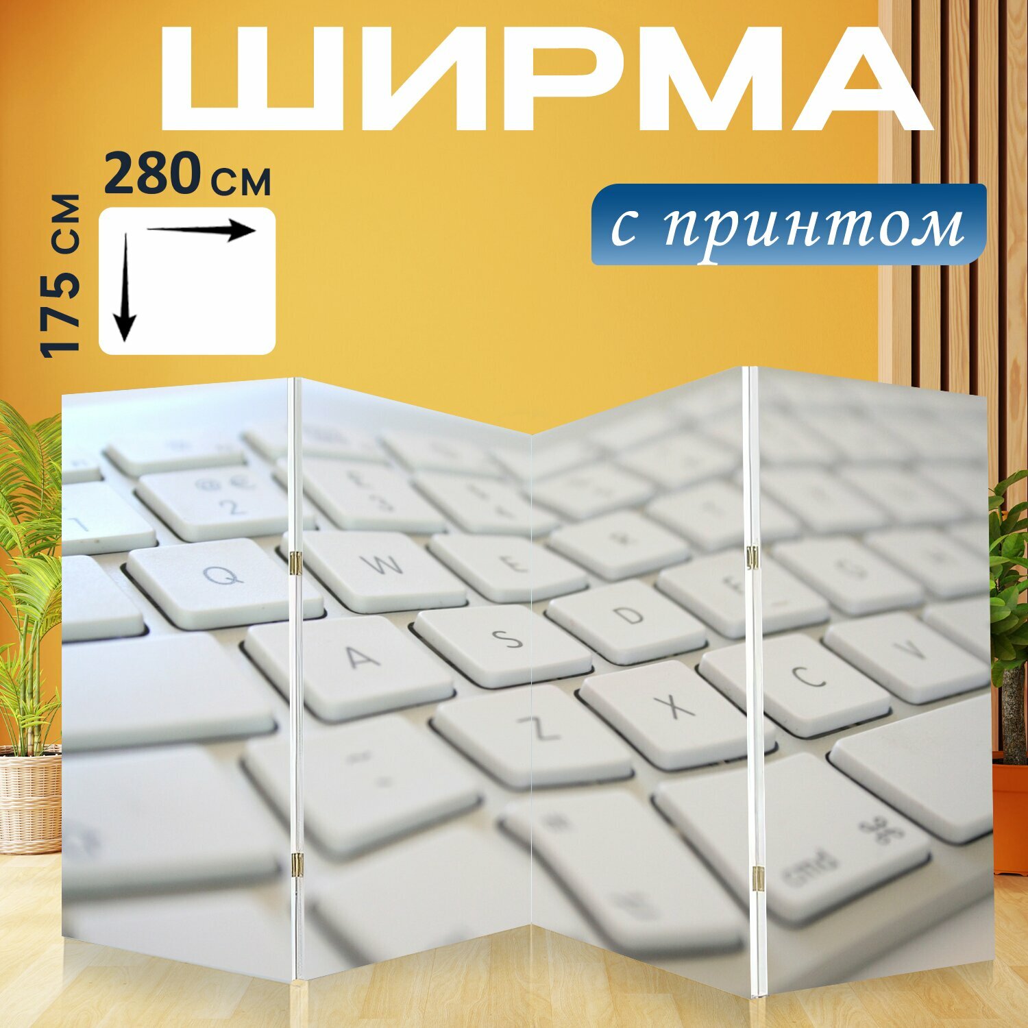 Купить Ширма "Клавиатура, ключи, компьютер" перегородка для зонирования комнаты с принтом 280x175 см. на холсте