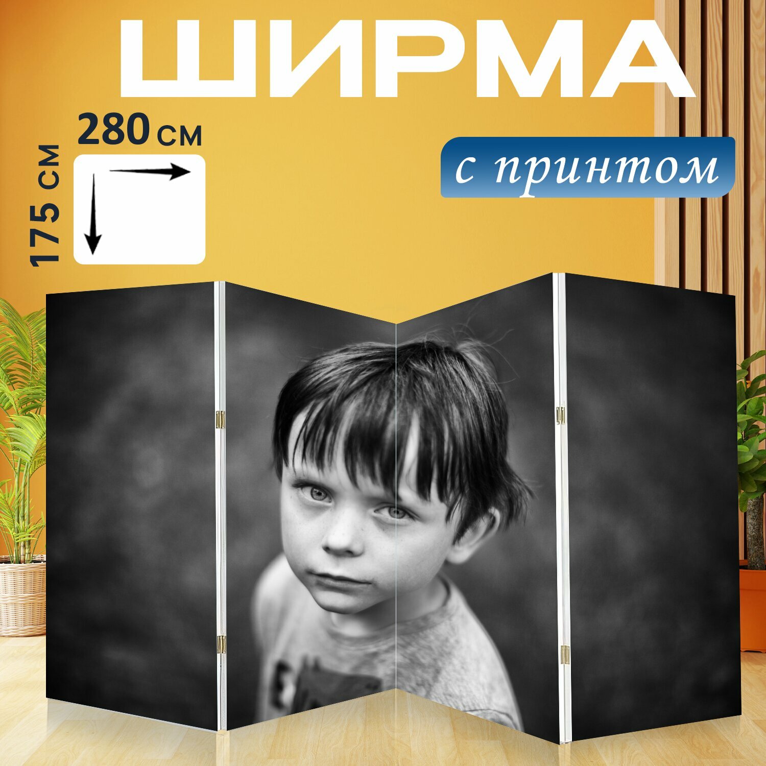 Купить Ширма "Мальчик, молодой, сын" перегородка для зонирования комнаты с принтом 280x175 см. на холсте