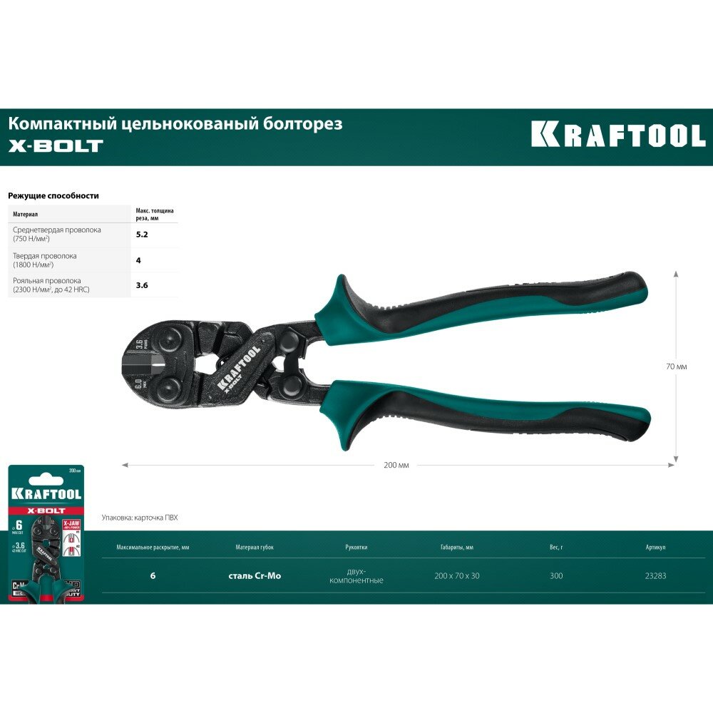KRAFTOOL X-Bolt Компактный цельнокованый болторез 200 мм 23283
