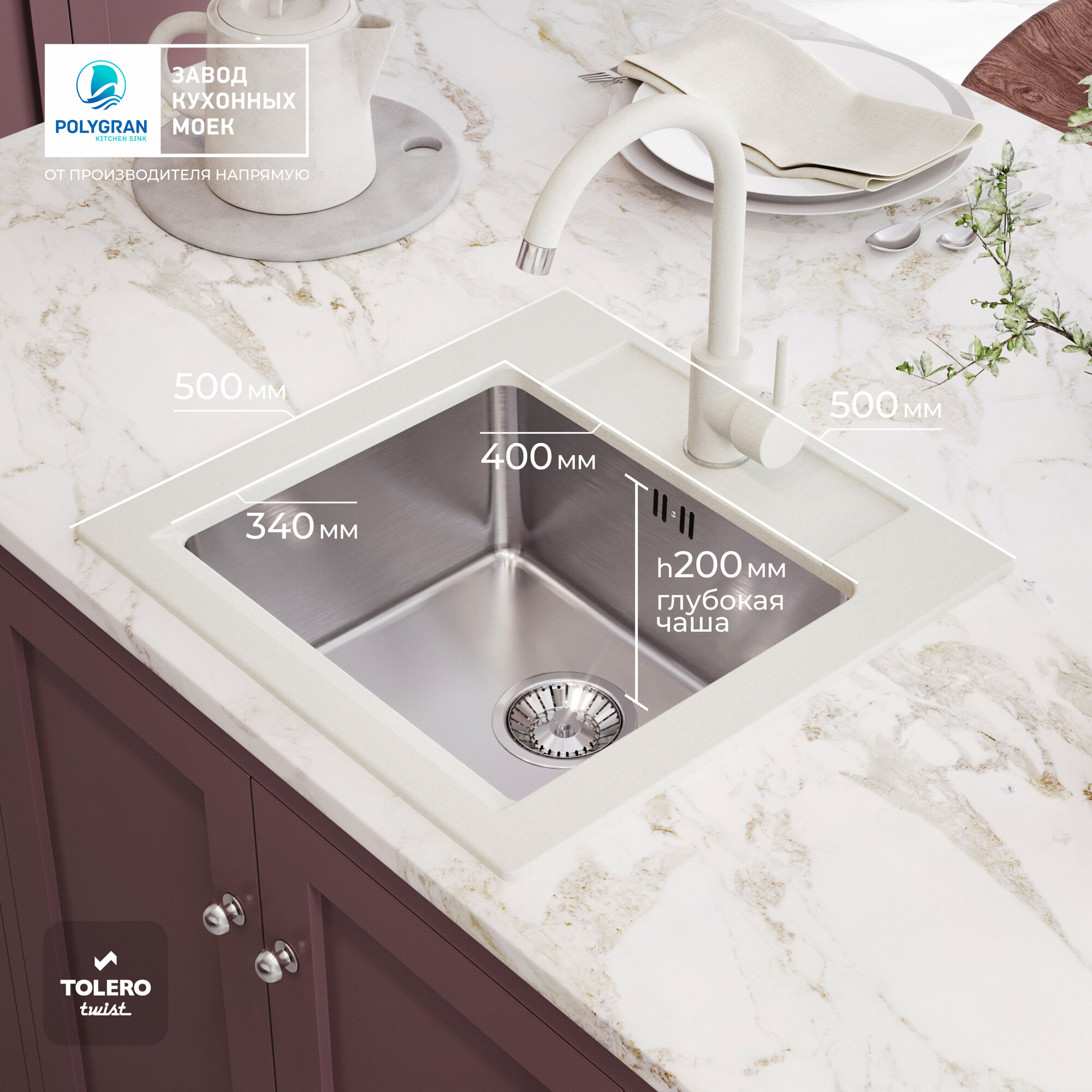 СохранитьМойка для кухни TOLERO Twist TTS-500 комбинированная (Туман) интересное: