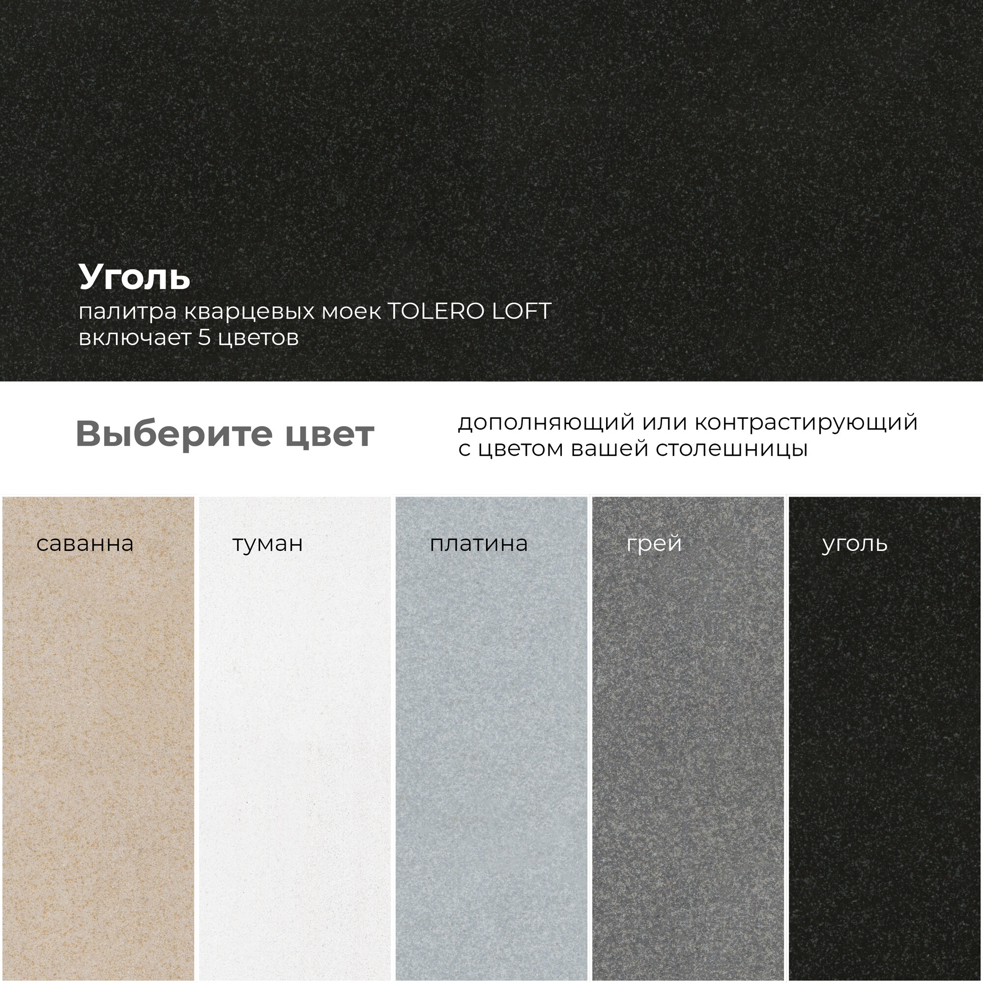Кухонная мойка кварцевая TOLERO Loft TL-860 (Уголь)
