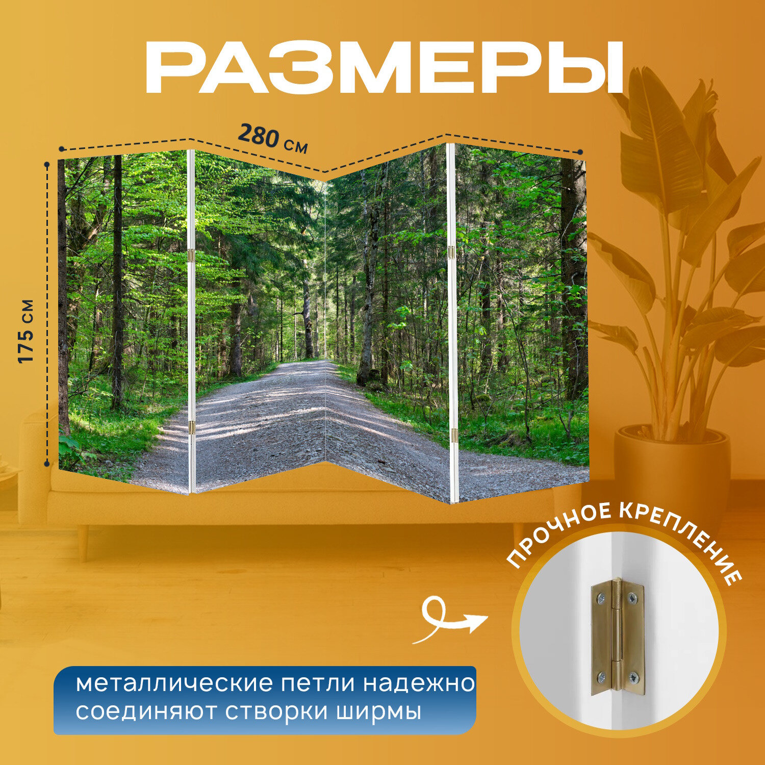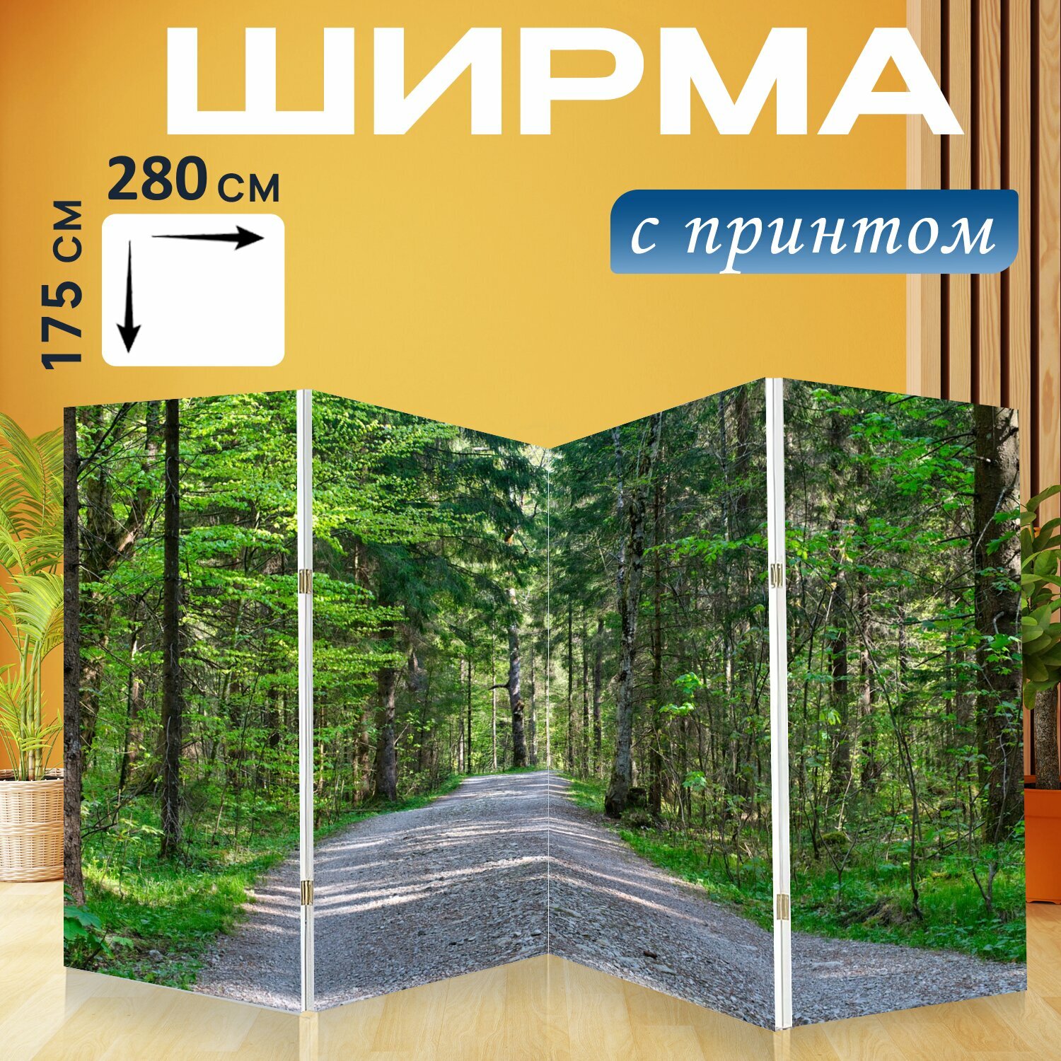 Ширма "Лес, дорожка, лесная тропа" перегородка для зонирования комнаты с принтом 280x175 см. на холсте интересное: