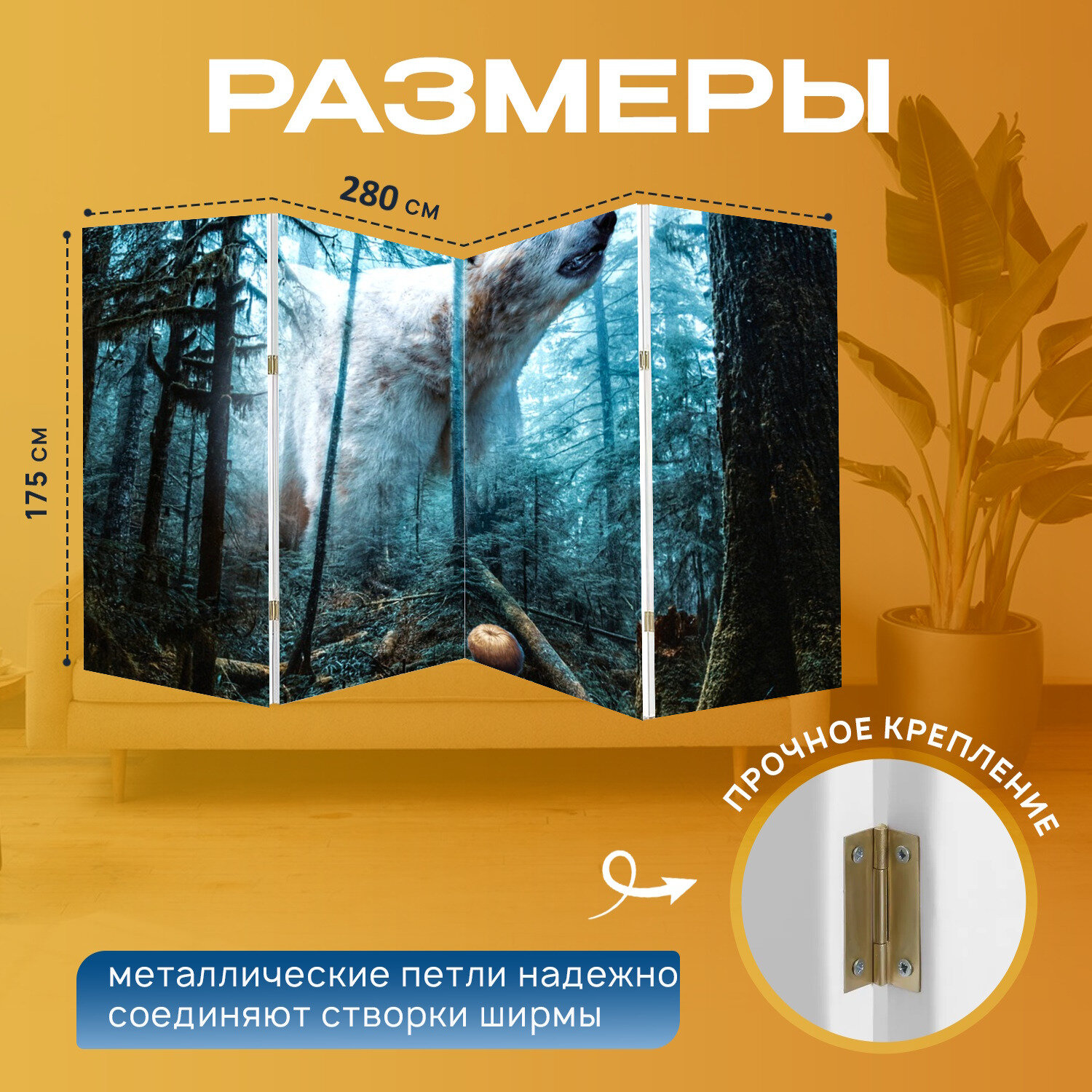 Ширма "Медведь, лес, ребенок" перегородка для зонирования комнаты с принтом 280x175 см. на холсте интересное: