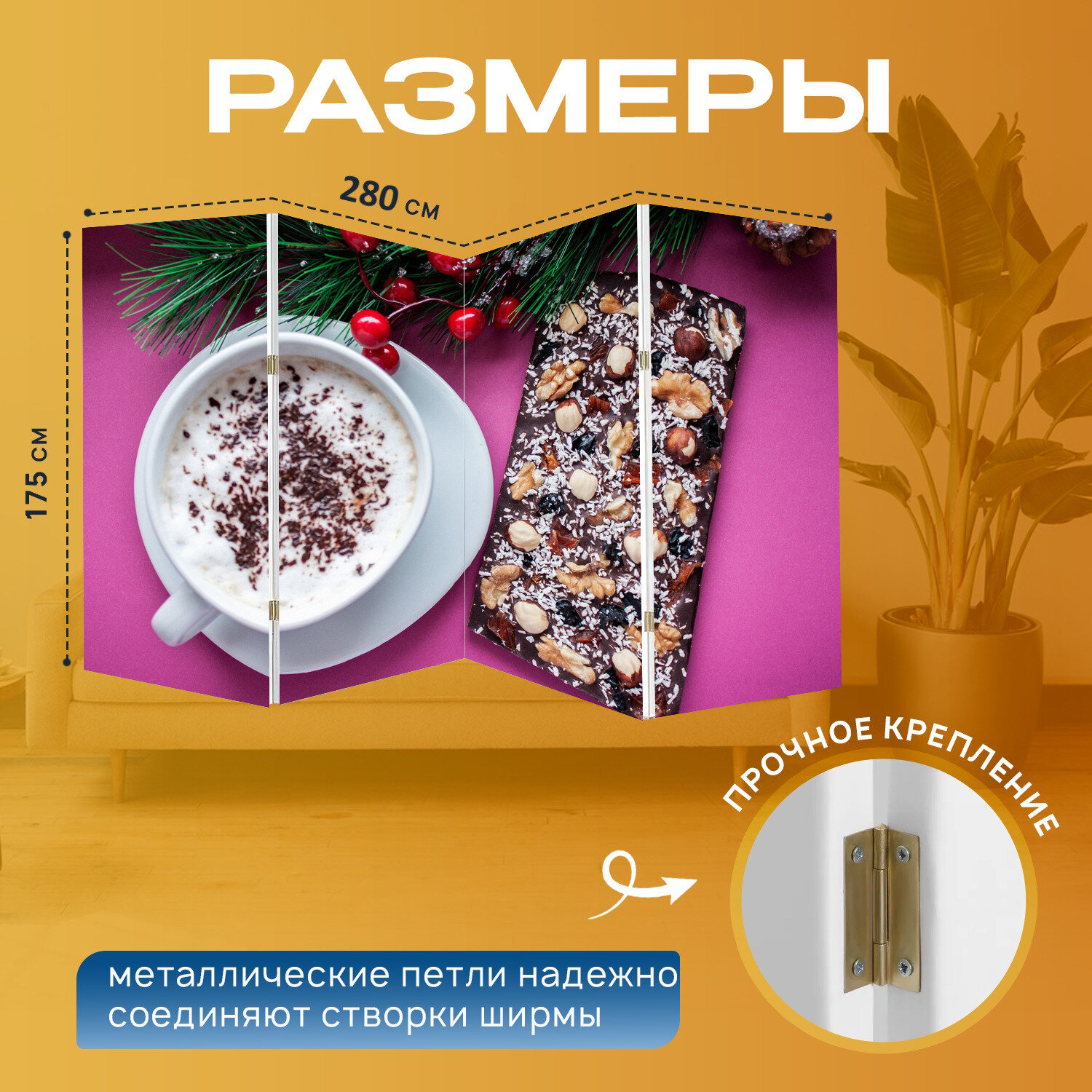 Ширма "Кофе, шоколад, напиток" перегородка для зонирования комнаты с принтом 280x175 см. на холсте интересное: