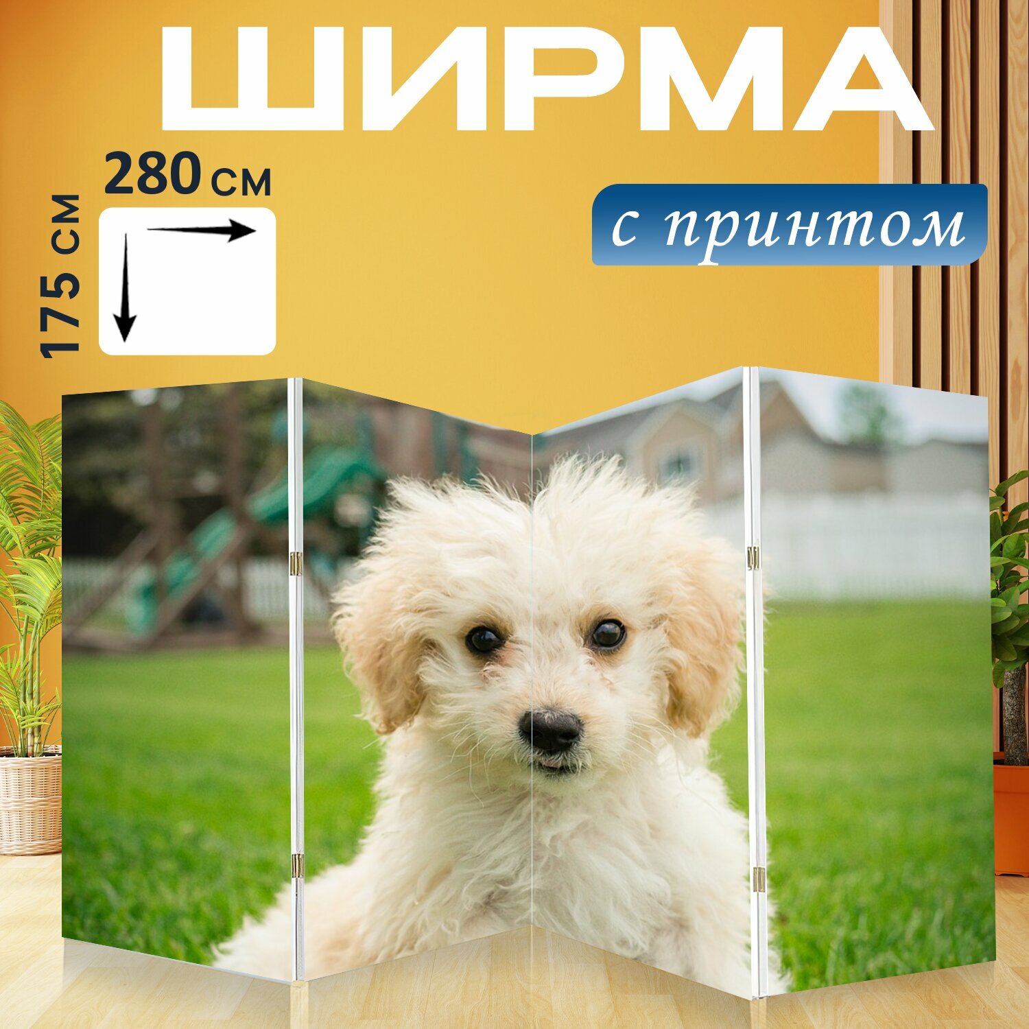 Ширма "Щенок, собака, млекопитающее" перегородка для зонирования комнаты с принтом 280x175 см. на холсте интересное: