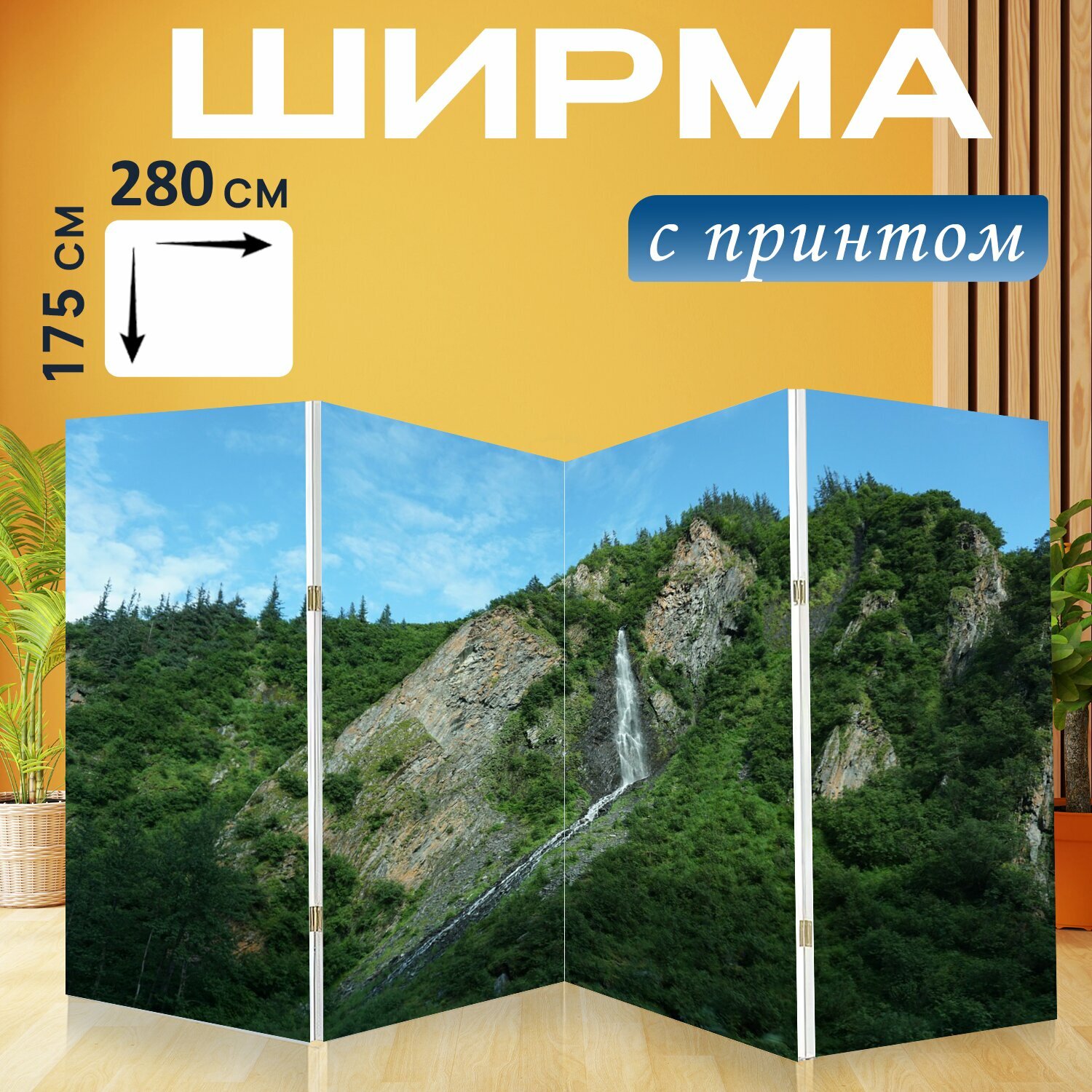 Ширма "Водопад, горы, живописный" перегородка для зонирования комнаты с принтом 280x175 см. на холсте интересное: