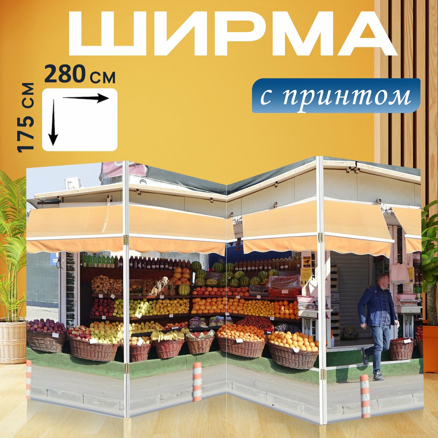 Ширма "Хранить, фрукты, овощи" перегородка для зонирования комнаты с принтом 280x175 см. на холсте интересное: