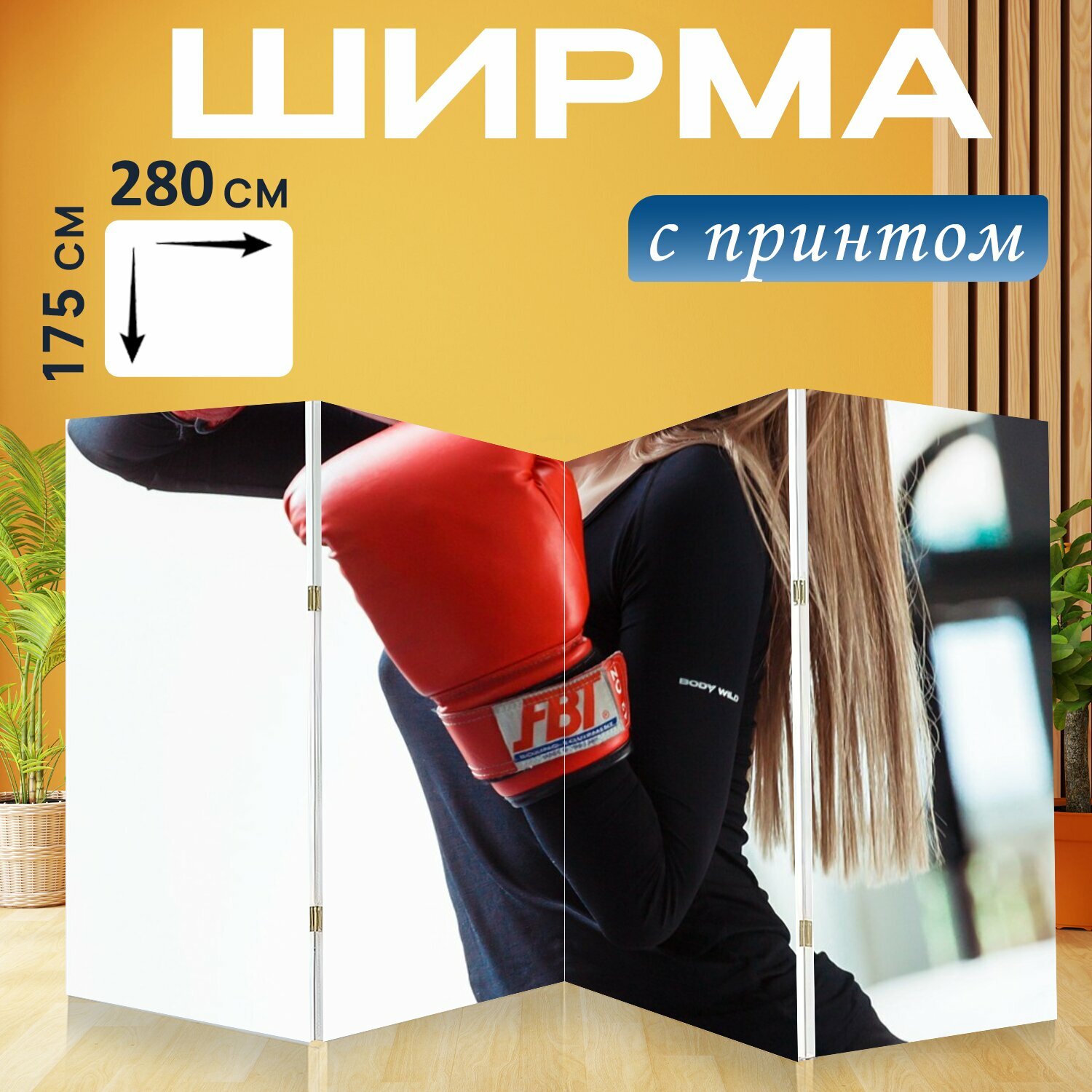 Ширма "Девочка, виды спорта, заниматься боксом" перегородка для зонирования комнаты с принтом 280x175 см. на холсте интересное: