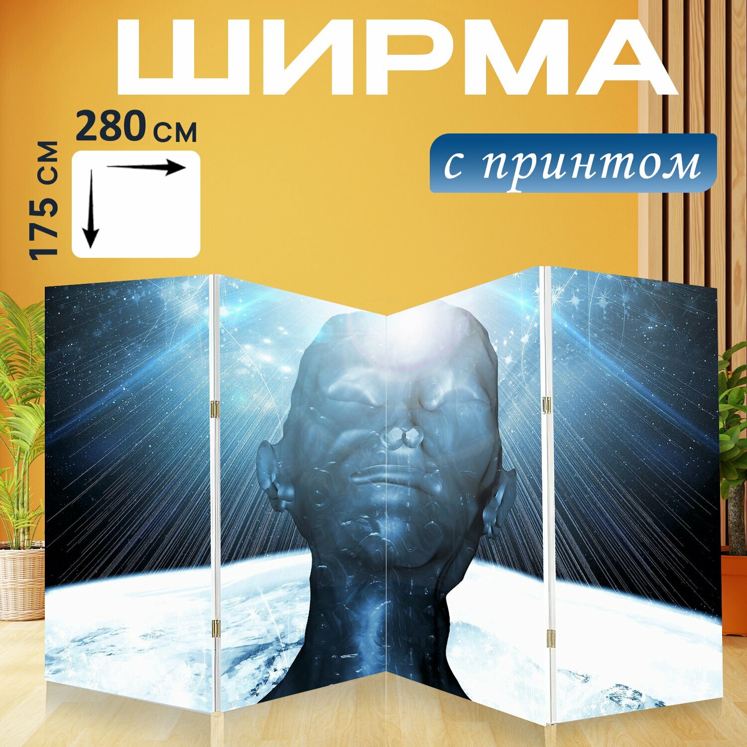Ширма "Чужеродных, свет, атмосфера" перегородка для зонирования комнаты с принтом 280x175 см. на холсте интересное: