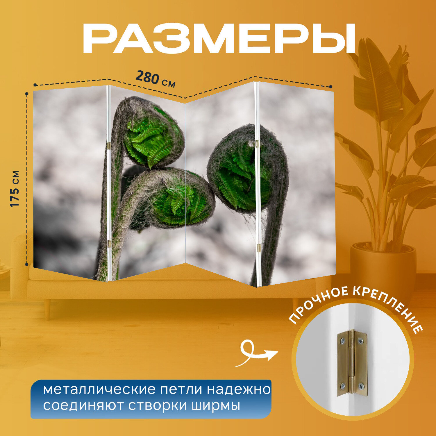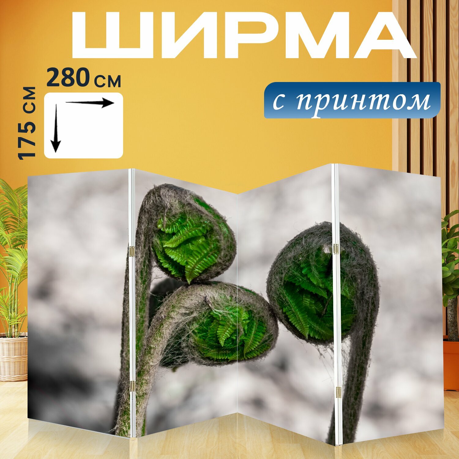 Ширма "Природа, папоротник, зеленый" перегородка для зонирования комнаты с принтом 280x175 см. на холсте интересное: