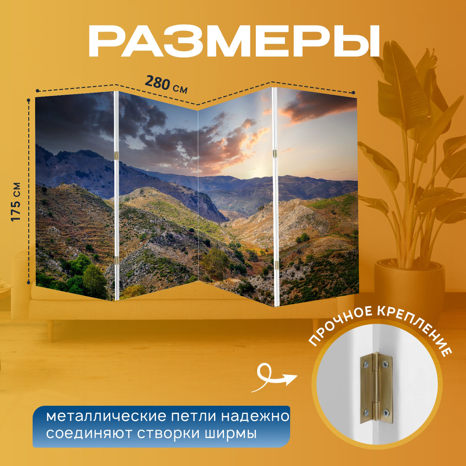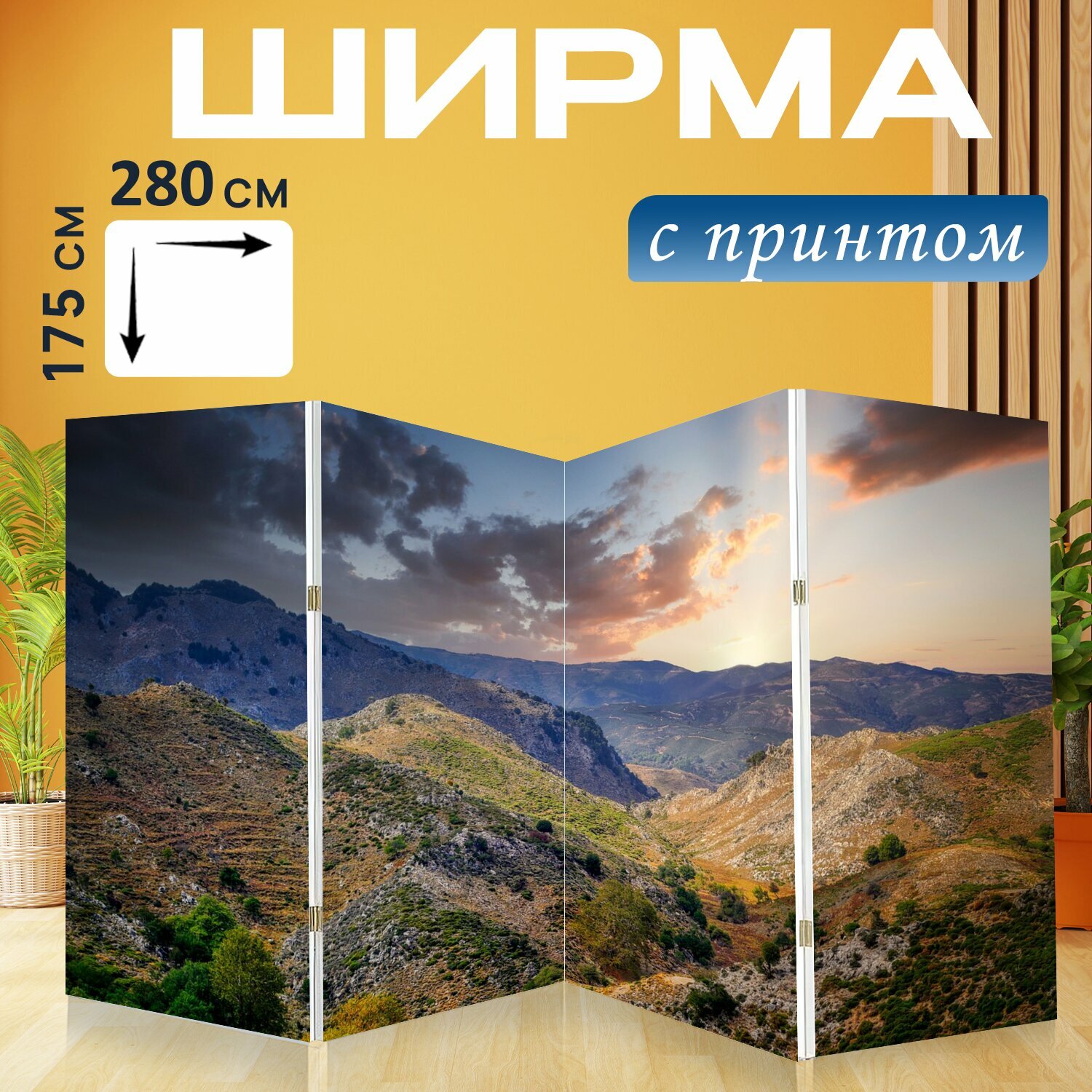 Ширма "Горы, горный хребет, небо" перегородка для зонирования комнаты с принтом 280x175 см. на холсте интересное: