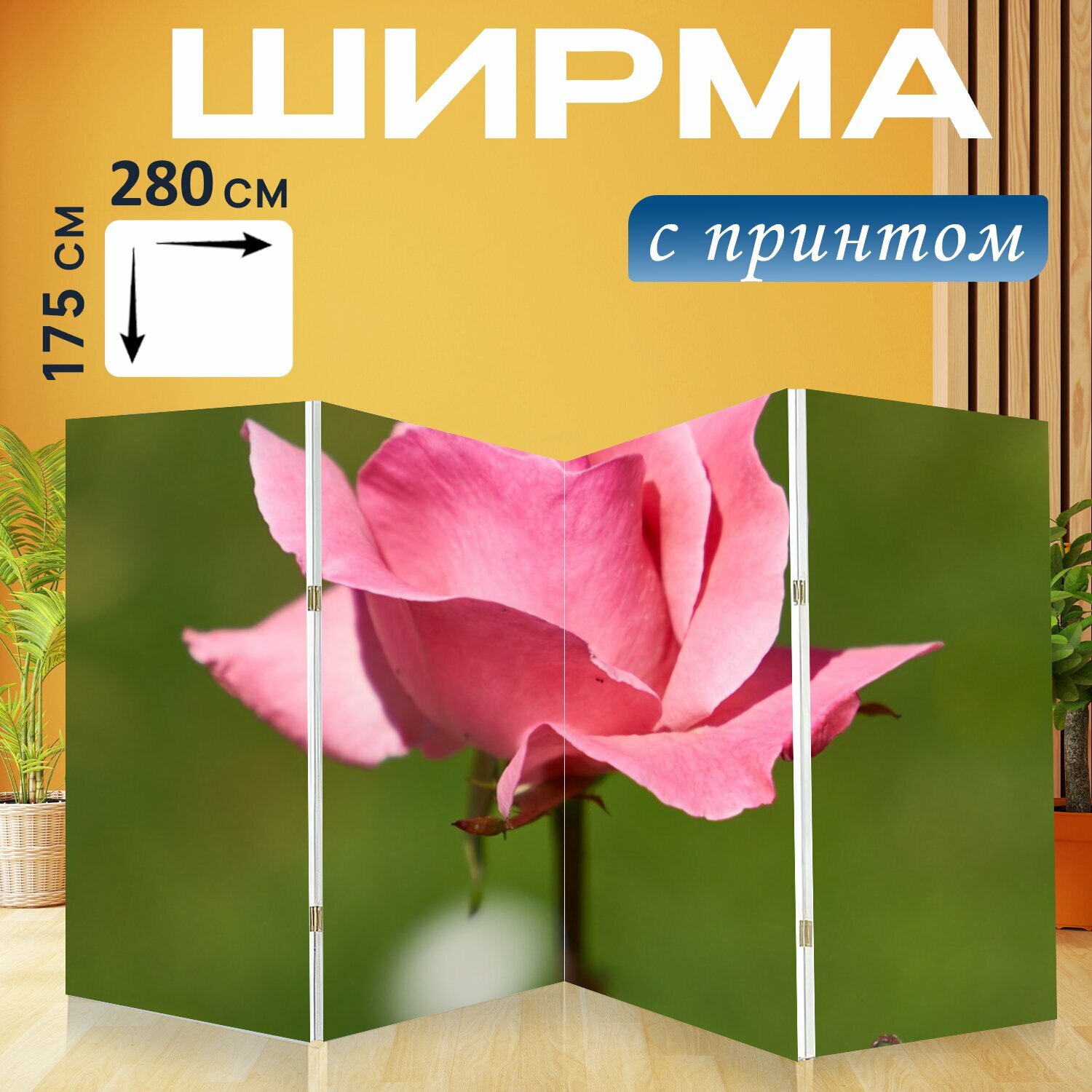 Ширма "Цветок, роуз, природа" перегородка для зонирования комнаты с принтом 280x175 см. на холсте интересное: