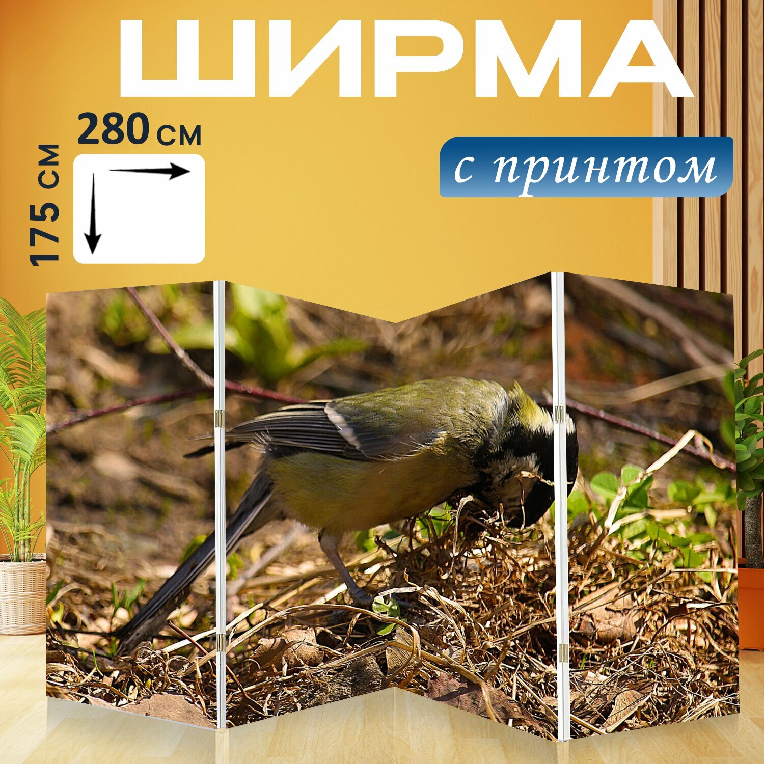 Ширма "Синица, птицы, весна" перегородка для зонирования комнаты с принтом 280x175 см. на холсте интересное: