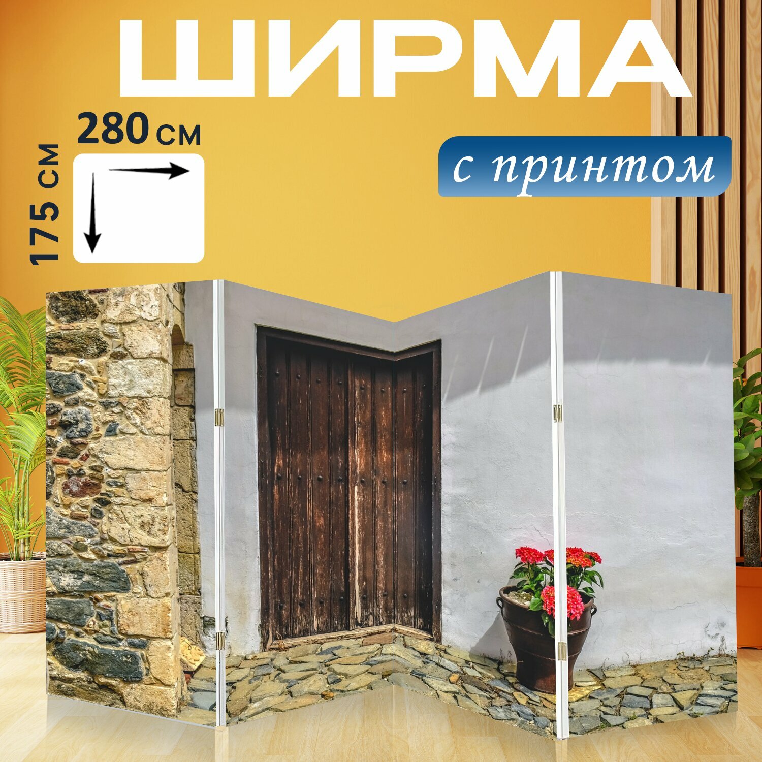 Ширма "Старый дом, дверь, архитектуры" перегородка для зонирования комнаты с принтом 280x175 см. на холсте интересное: