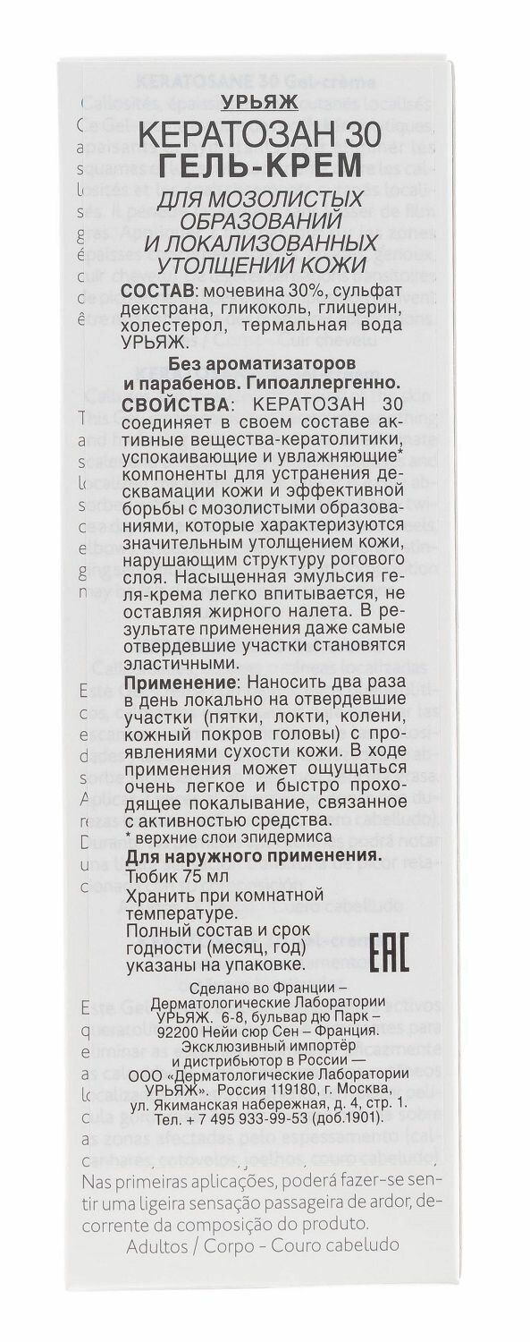 Урьяж Кератозан 30 гель-крем для мозолистых образований и локализованных утолщений 75мл