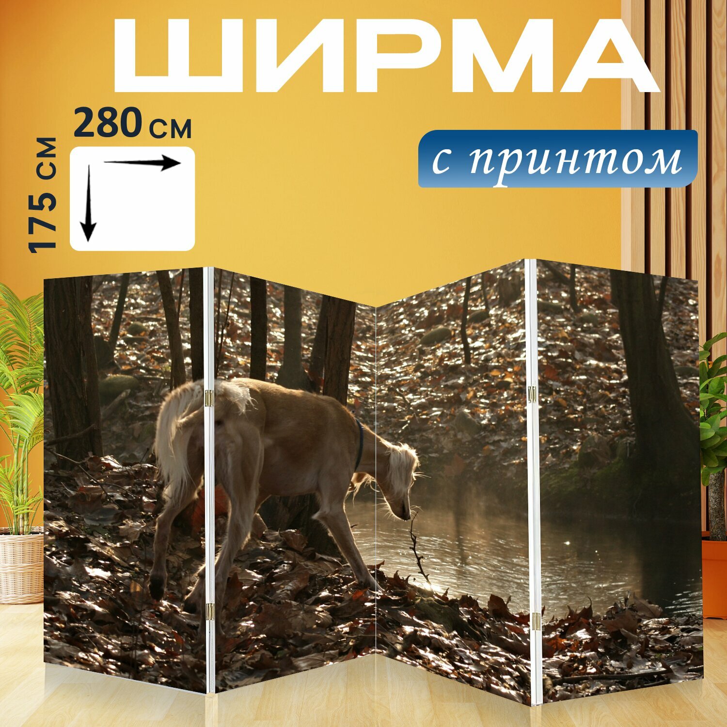 Ширма "Собака, салюки, магия" перегородка для зонирования комнаты с принтом 280x175 см. на холсте интересное: