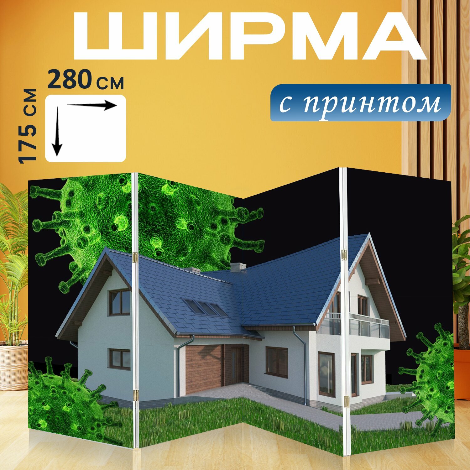 Ширма "Домашний офис, изоляция, карантин" раскладная перегородка для зонирования с принтом на холсте