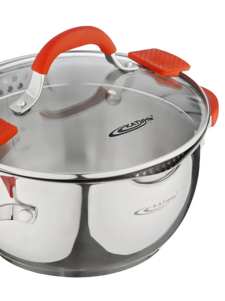 Катунь "Аврора" КТ07-D-22, Кастрюля с крышкой (объём 4,0 л, нержавеющая сталь)