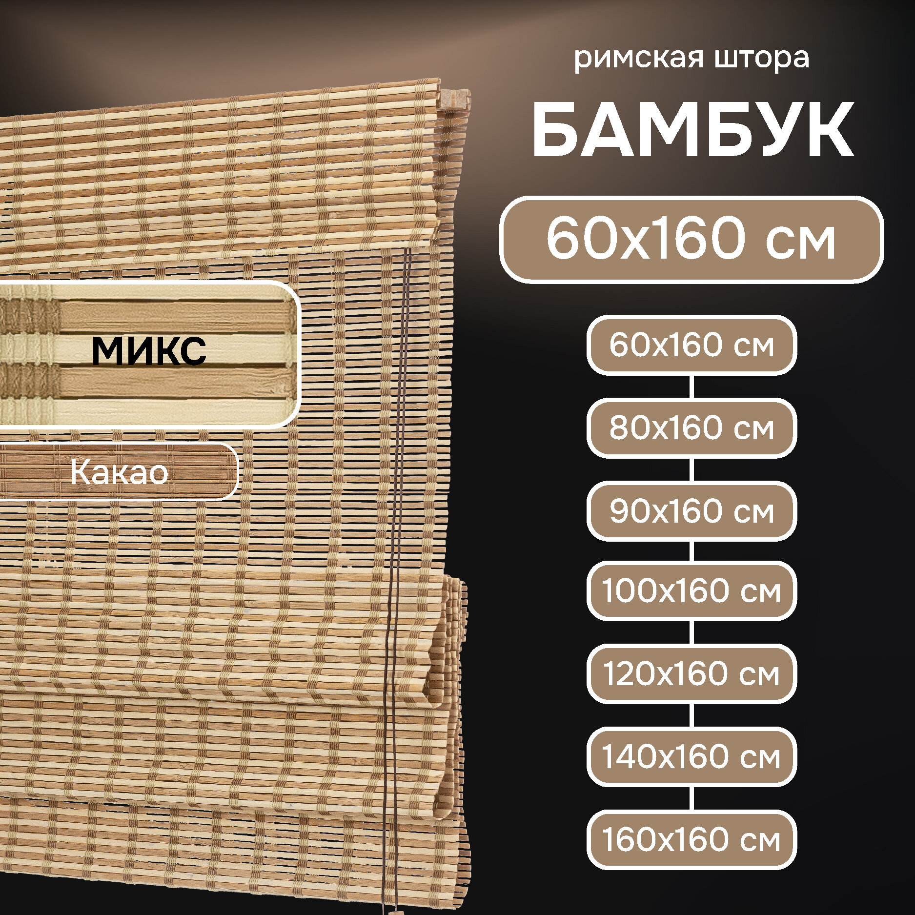 Римские шторы из бамбука какао, 60х160 см
