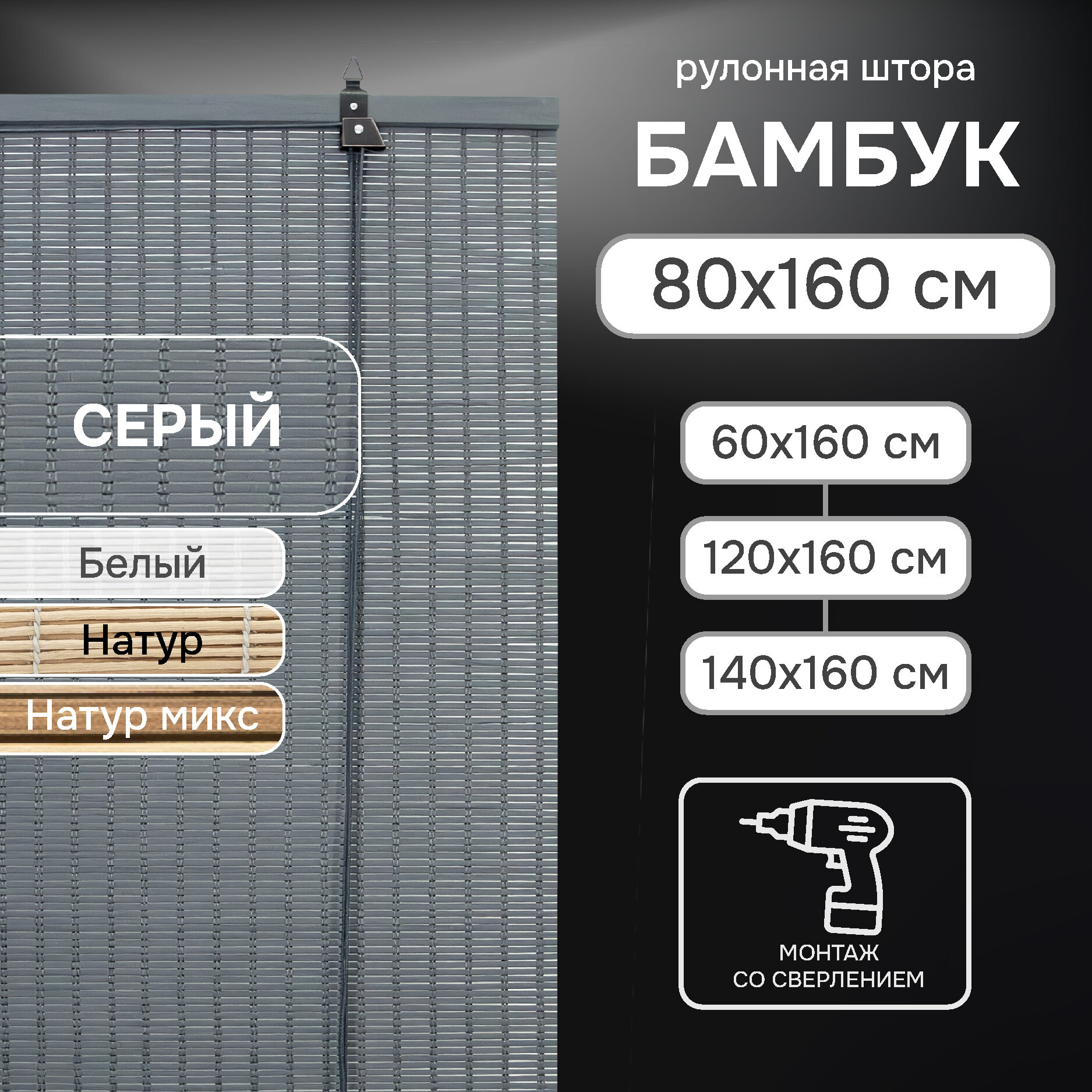 бамбуковые рулонные шторы. серый. 80х160. 70145080160