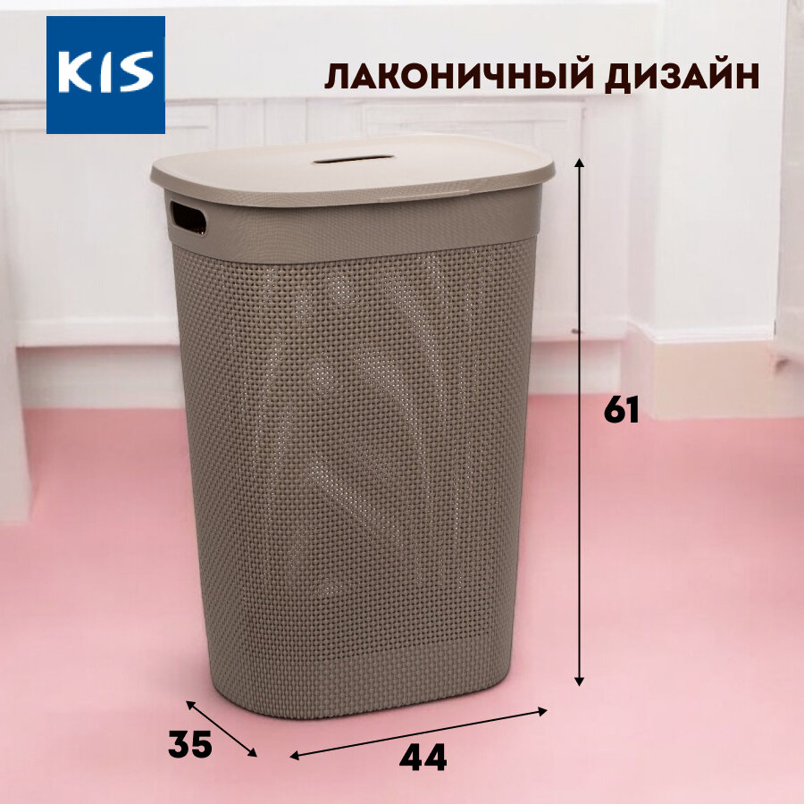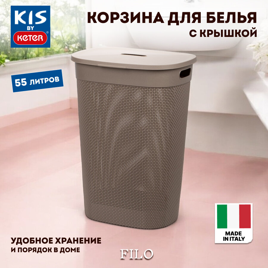 Корзина для белья с крышкой, 55л KIS FILO, пластик, цвет коричневый