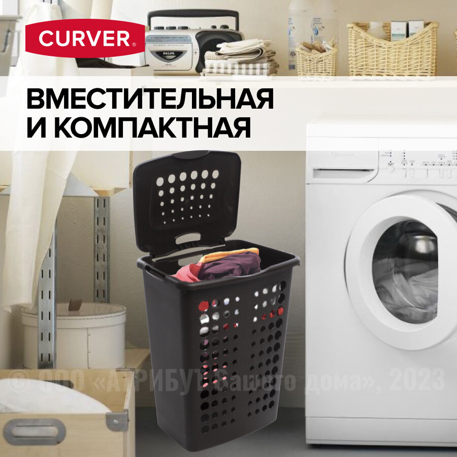 Корзина для белья с крышкой 40 л, Victor CURVER, пластик, цвет темно-коричневый интересное: