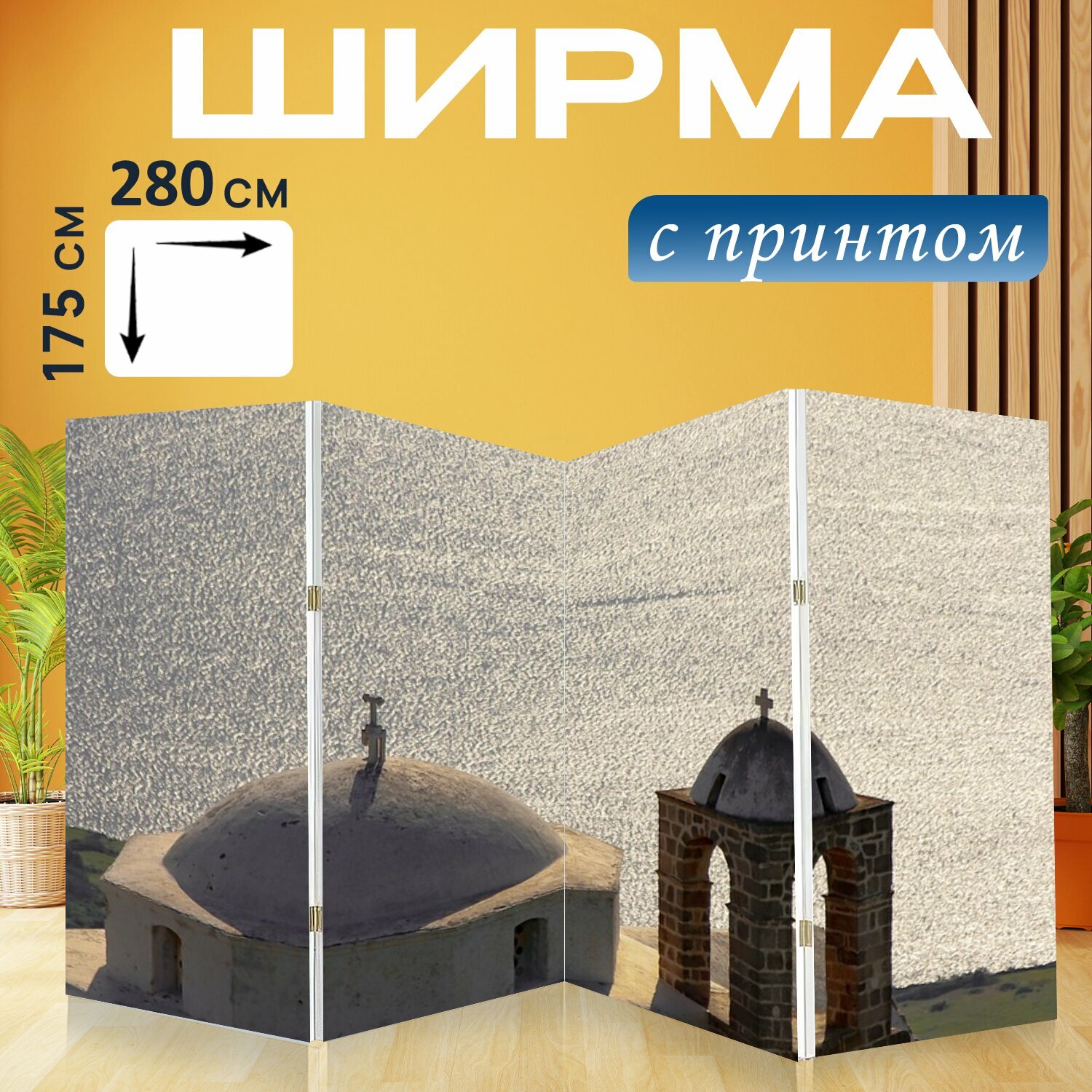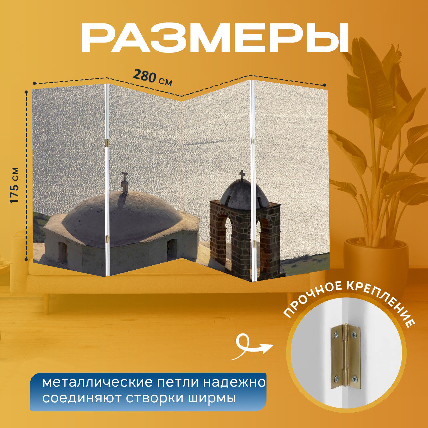 Ширма "Пейзаж, остров, эллада" перегородка для зонирования комнаты с принтом 280x175 см. на холсте интересное: