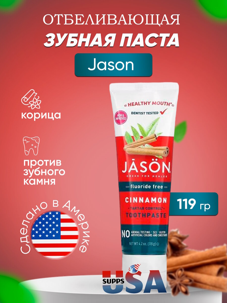 Купить Jason Natural, Healthy Mouth, зубная паста, предупреждающая появление зубного камня, без фторида, с корицей, 119 г