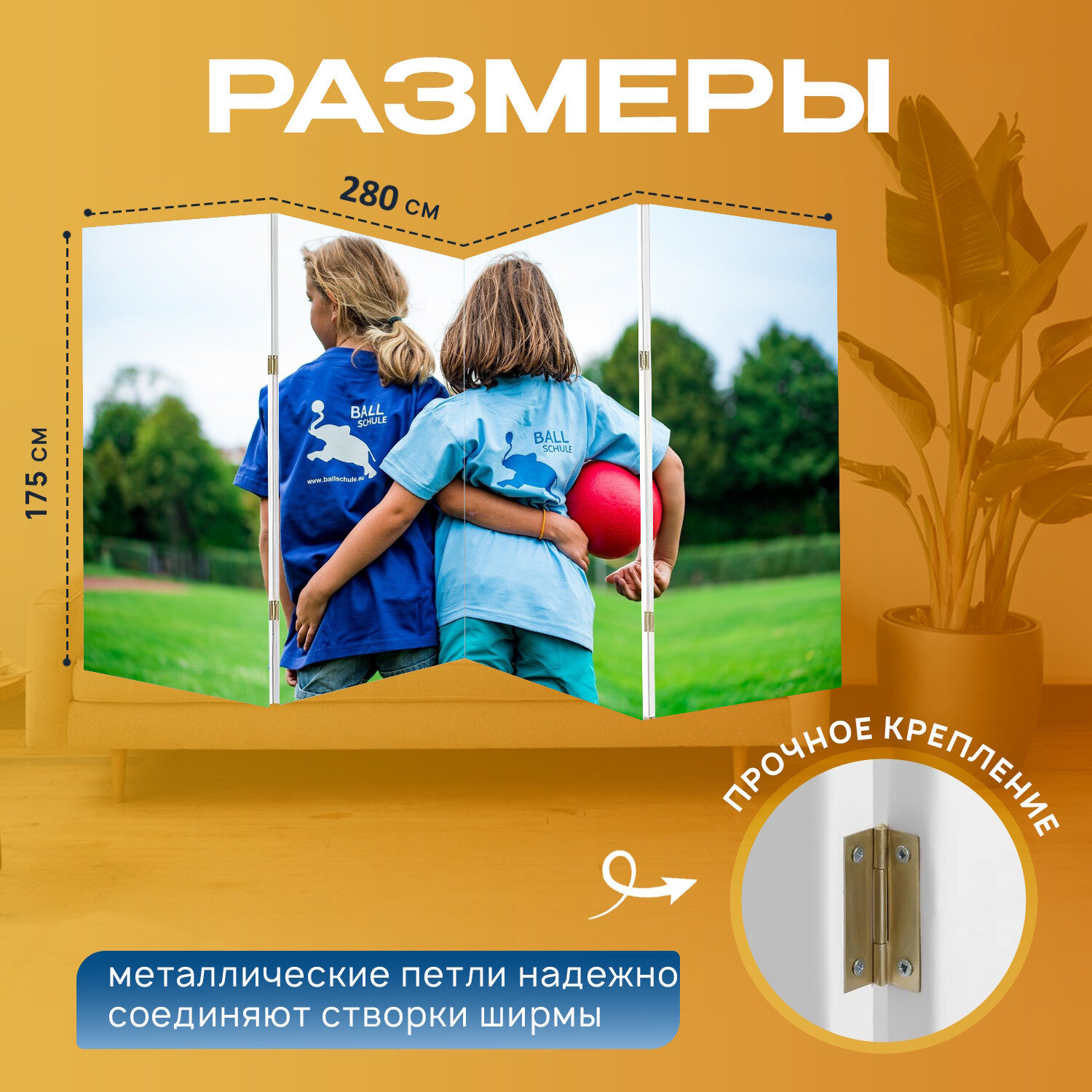 Ширма "Курс, гандбол, дети" перегородка для зонирования комнаты с принтом 280x175 см. на холсте интересное: