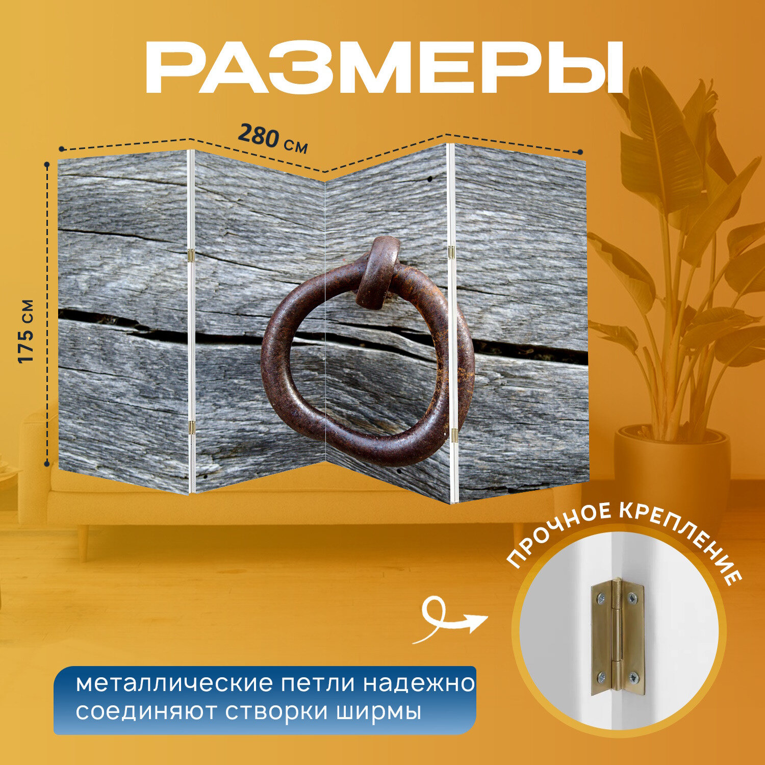 Купить Ширма "Звенеть, доска, древесина" перегородка для зонирования комнаты с принтом 280x175 см. на холсте