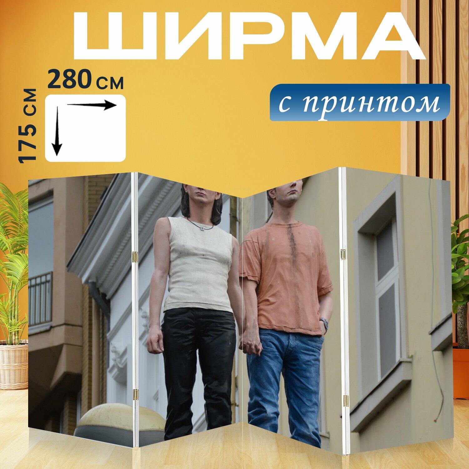 Ширма "Изобразительное искусство, статуя, дюссельдорф" перегородка для зонирования комнаты с принтом 280x175 см. на холсте интересное: