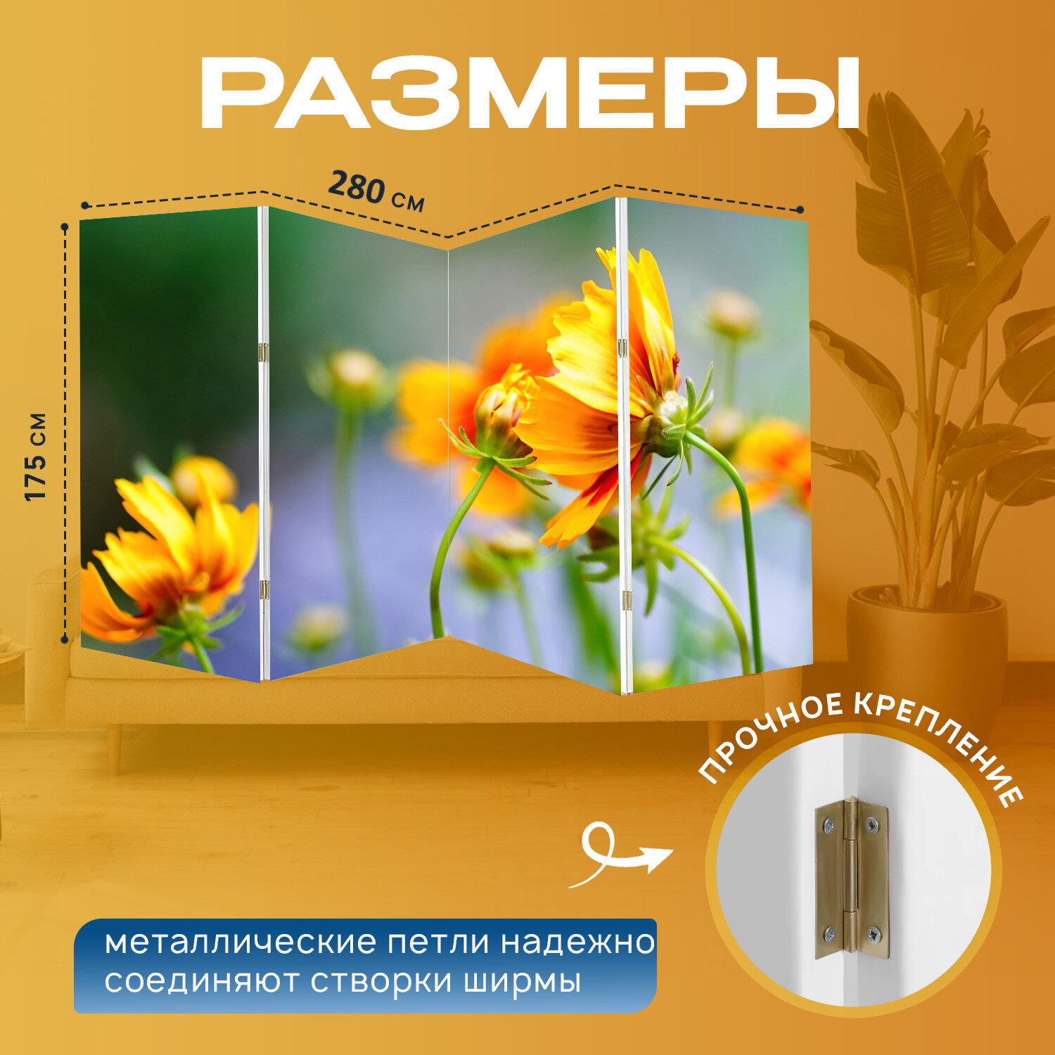 Ширма "Цветок, цвести, блум" перегородка для зонирования комнаты с принтом 280x175 см. на холсте интересное: