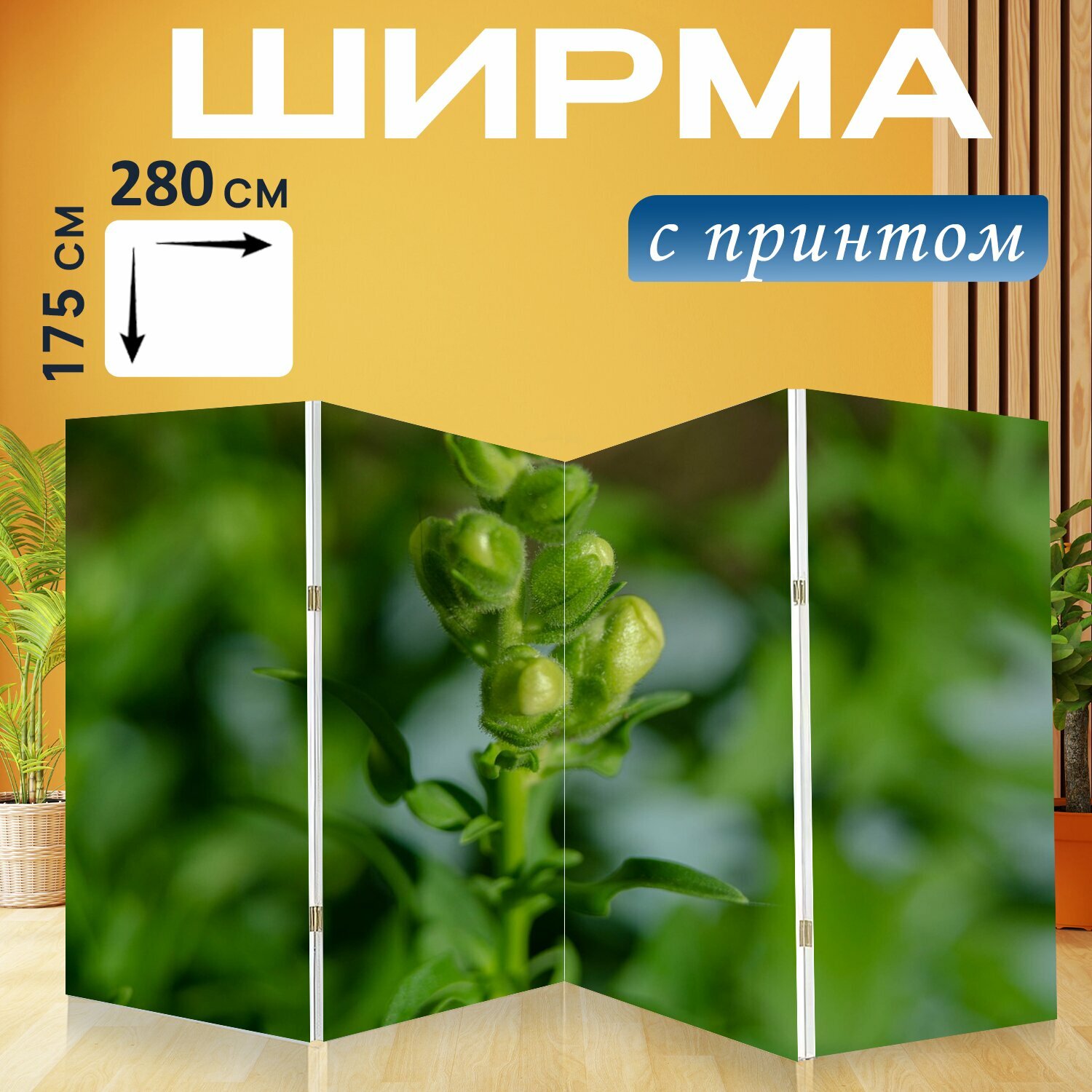 Купить Ширма "Бутоны, цветы, завод" перегородка для зонирования комнаты с принтом 280x175 см. на холсте