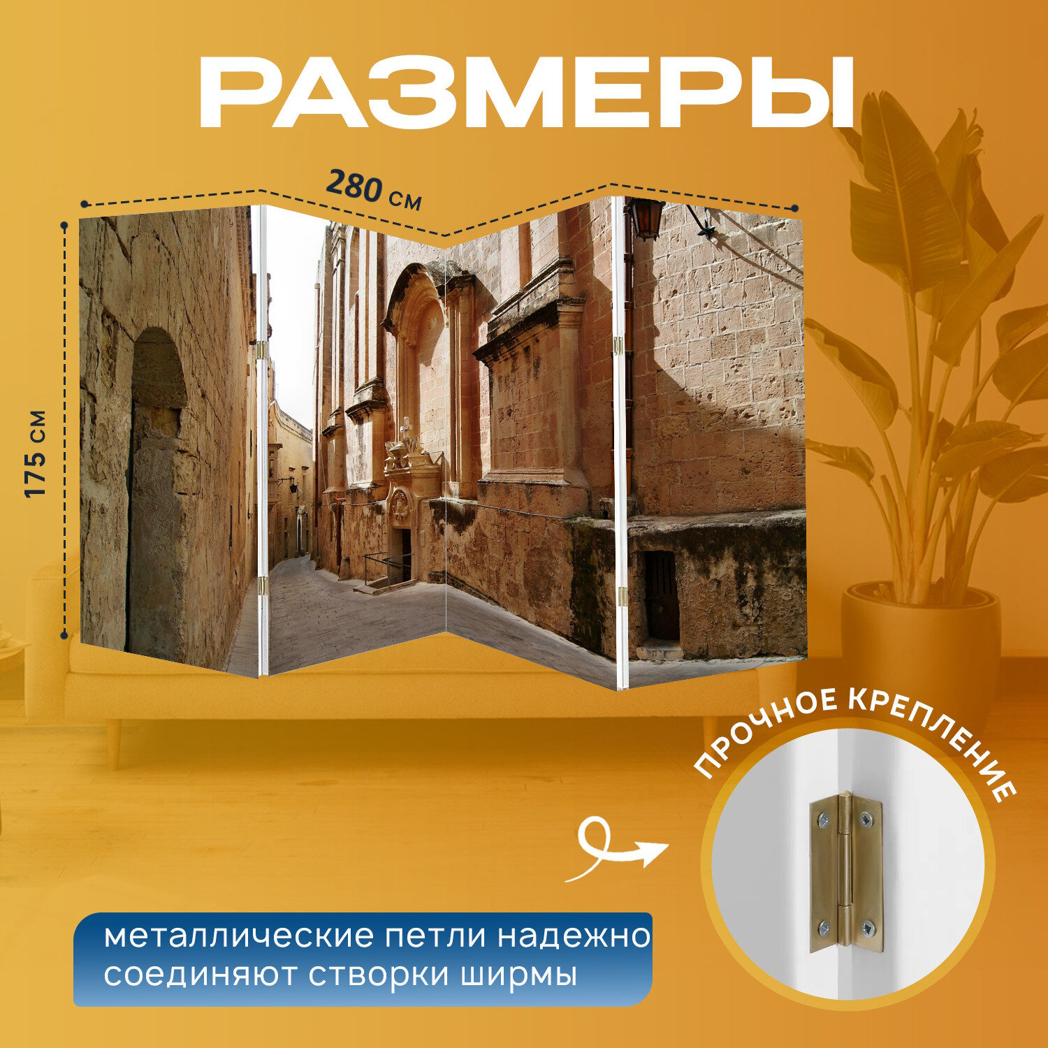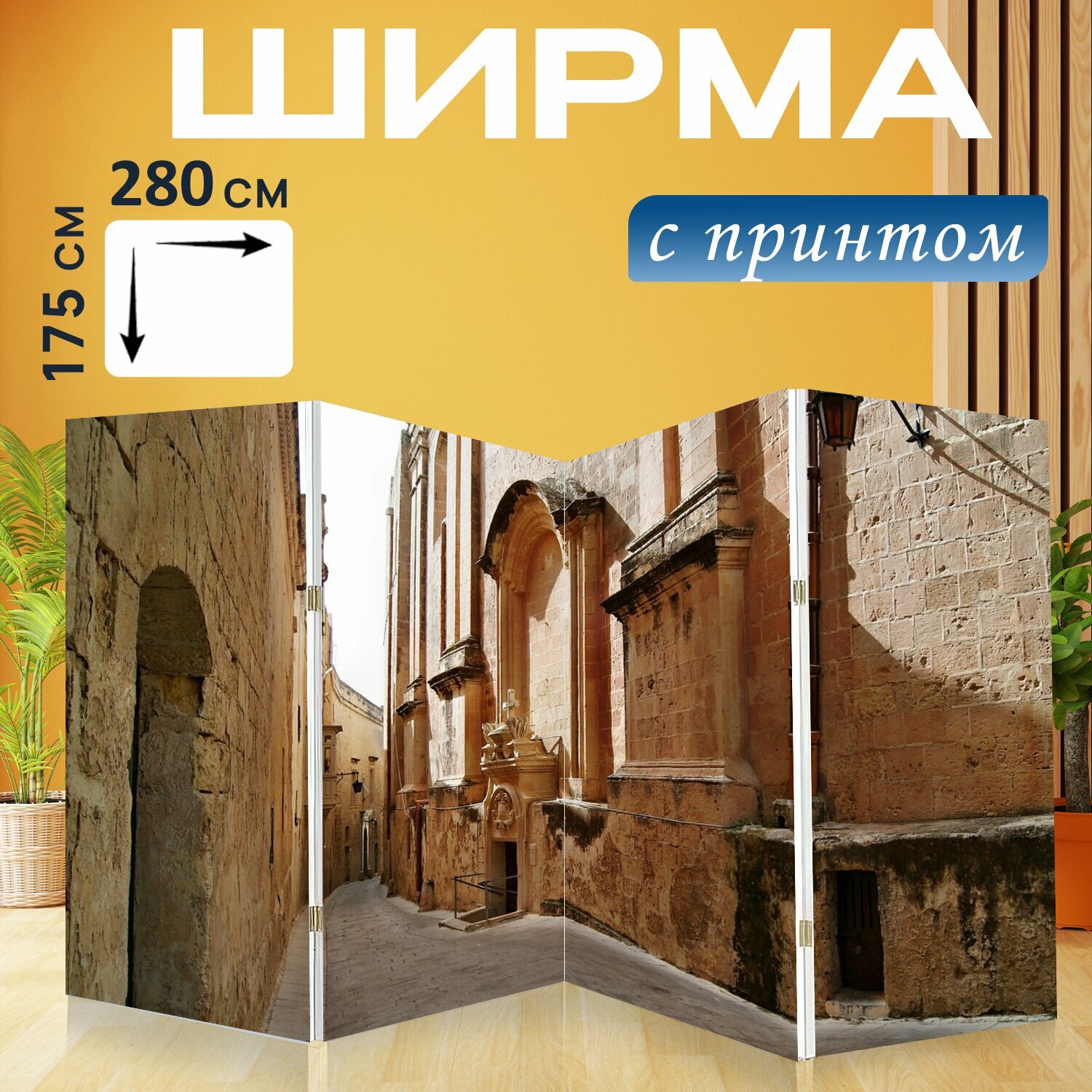 Ширма "Мальта, аллея, валлетта" перегородка для зонирования комнаты с принтом 280x175 см. на холсте интересное: