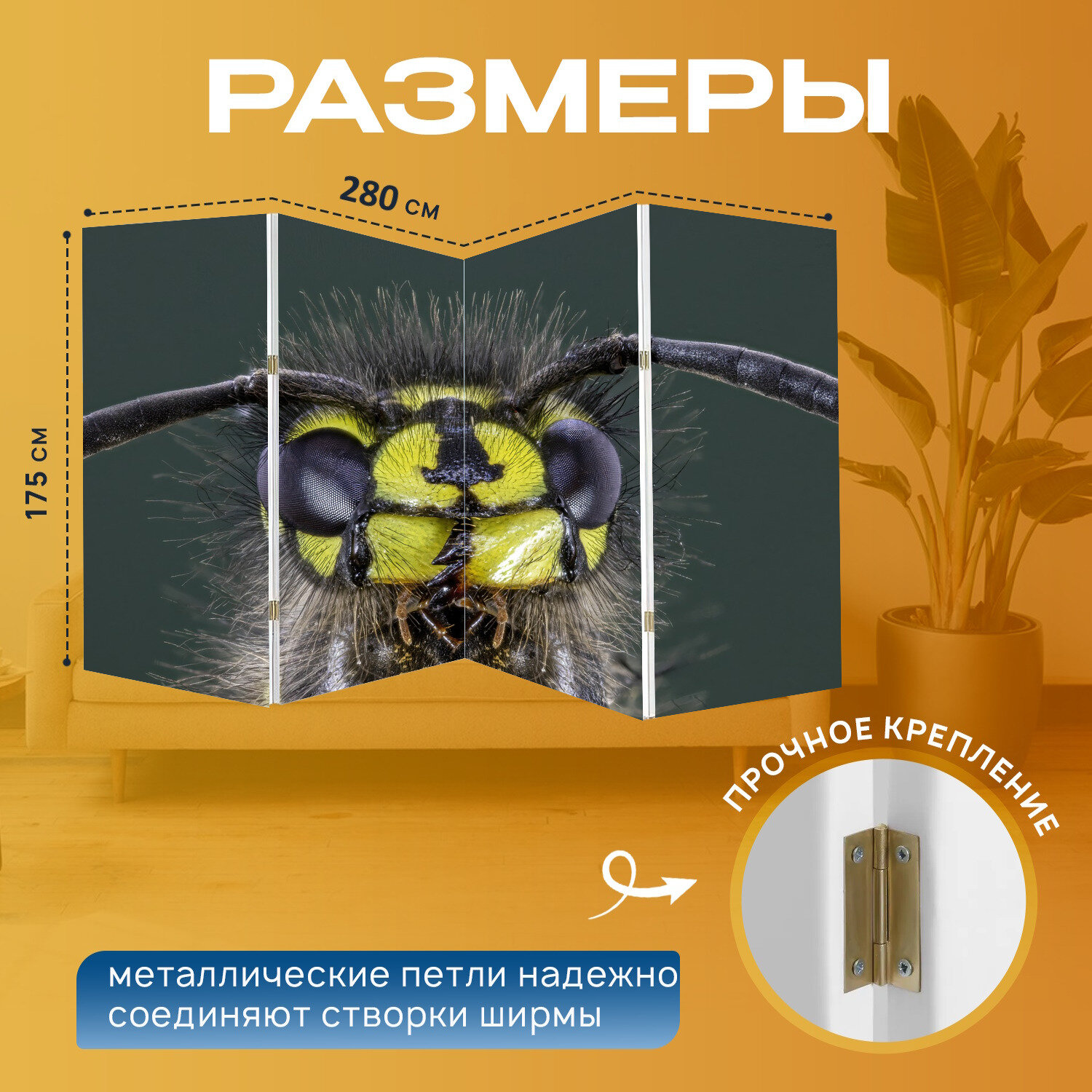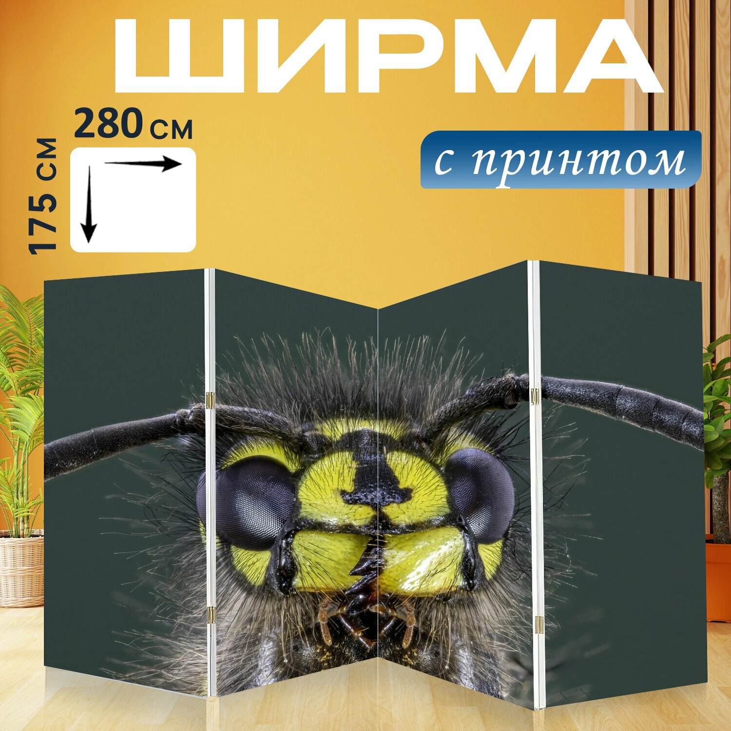 Ширма "Оса, насекомое, лицо" перегородка для зонирования комнаты с принтом 280x175 см. на холсте интересное: