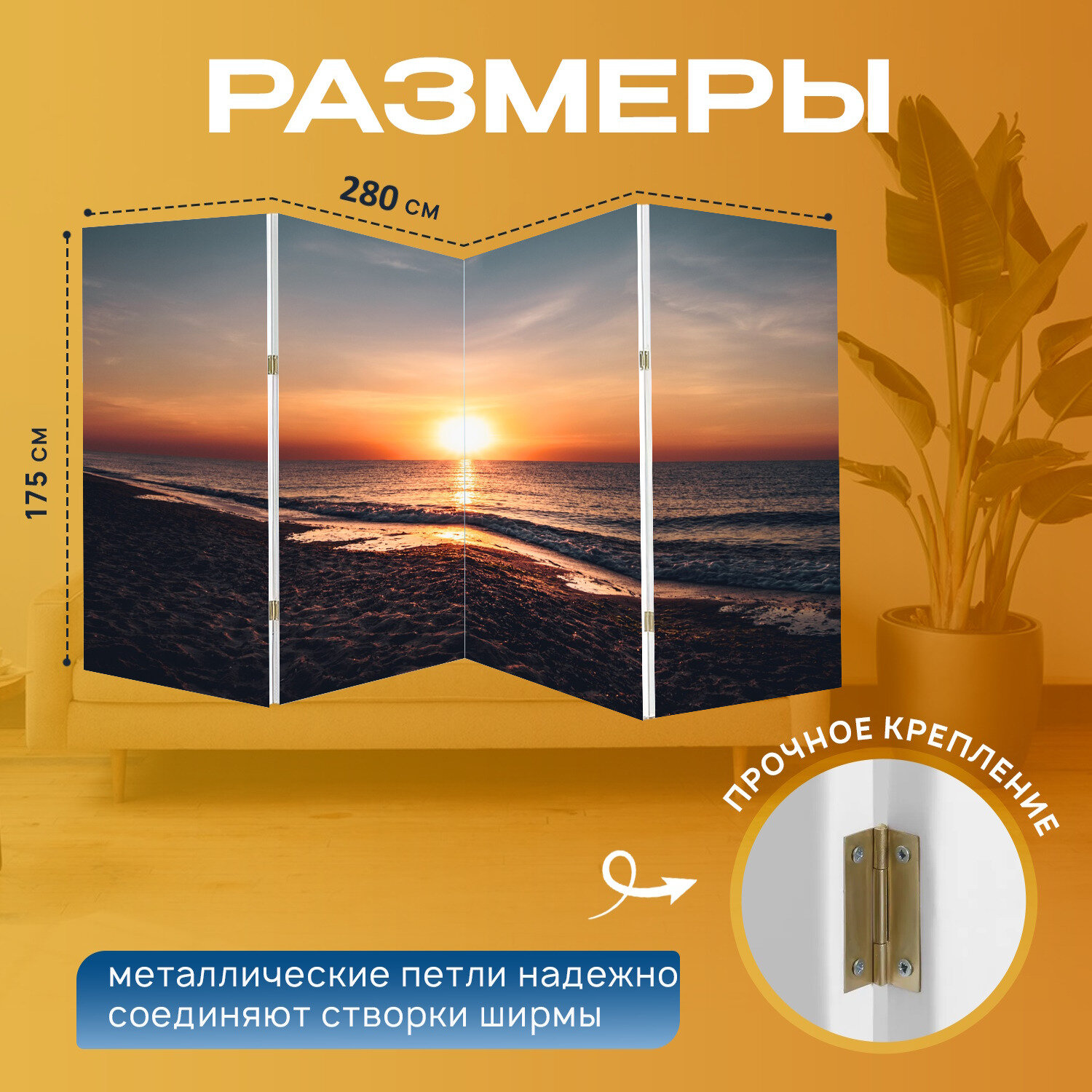 Ширма "Восход, восход солнца, заход солнца" перегородка для зонирования комнаты с принтом 280x175 см. на холсте интересное: