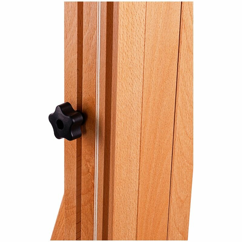 Качество дерева отличное, обработанное, без заноз и тд Удобный мольберт, который легко принимает как вертикальное положение (90 градусов), так и горизонтальное. |