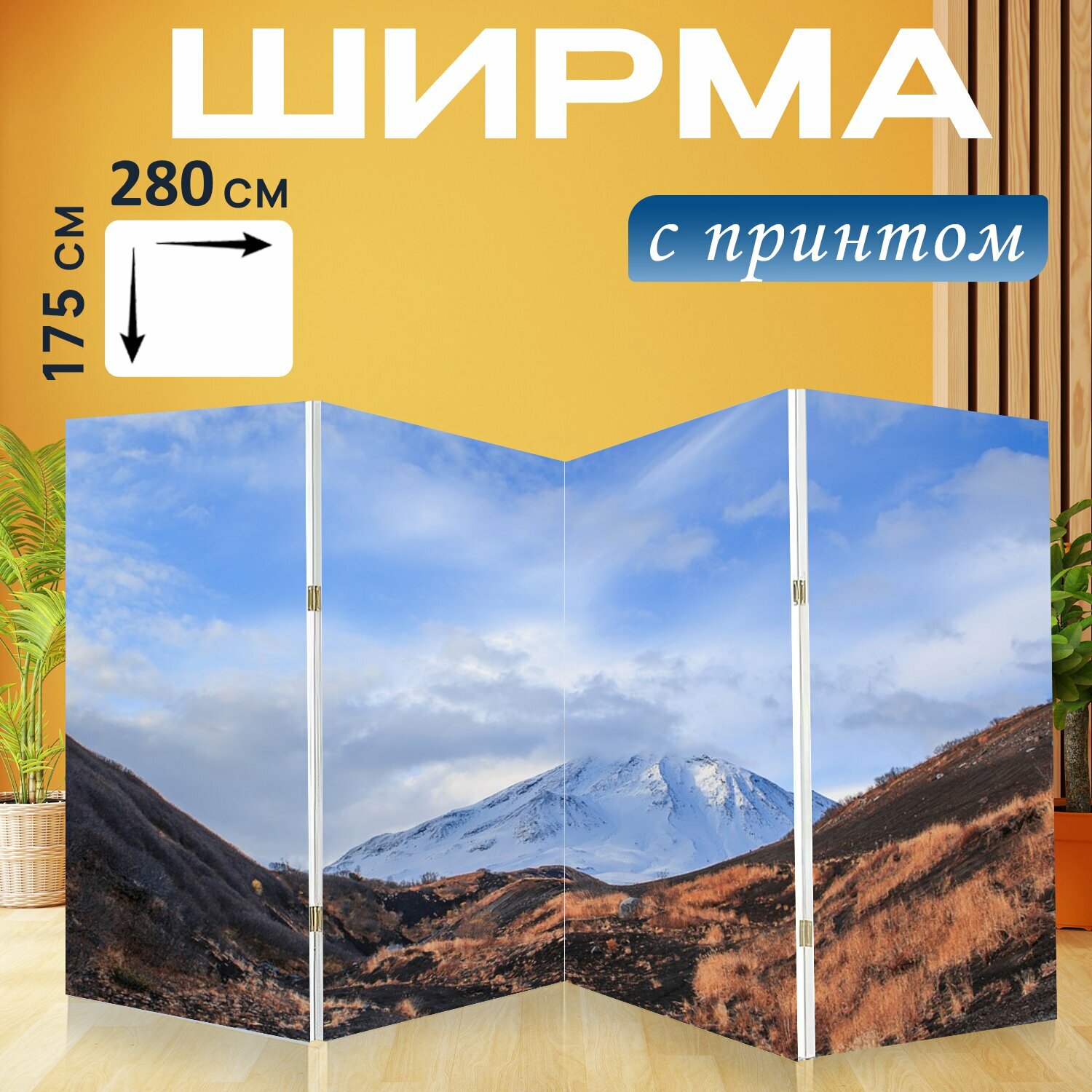 Ширма "Природа, гора, вулкан" перегородка для зонирования комнаты с принтом 280x175 см. на холсте интересное: