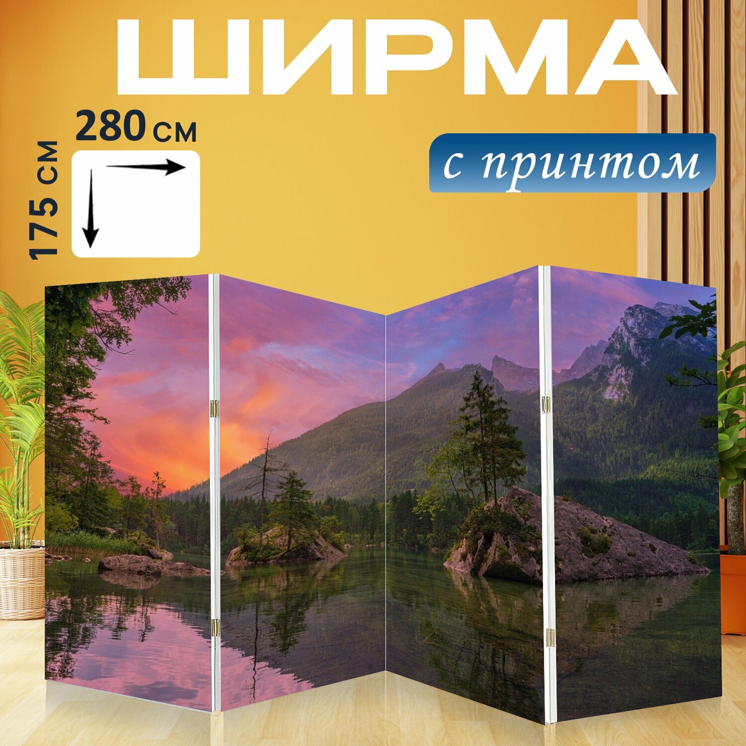Ширма "Природа, воды, озеро" перегородка для зонирования комнаты с принтом 280x175 см. на холсте интересное: