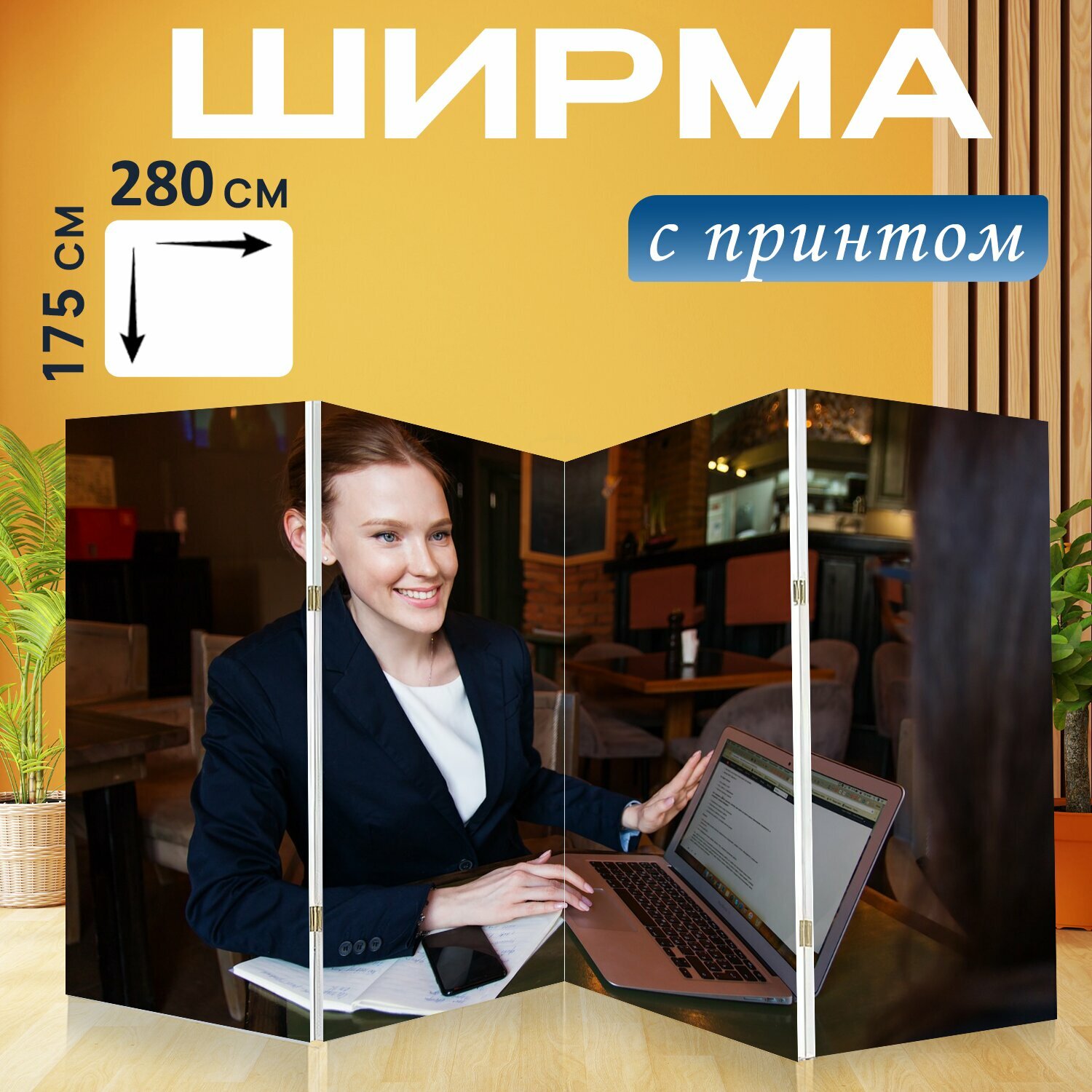Ширма "Бизнес, леди, женщина" перегородка для зонирования комнаты с принтом 280x175 см. на холсте интересное: