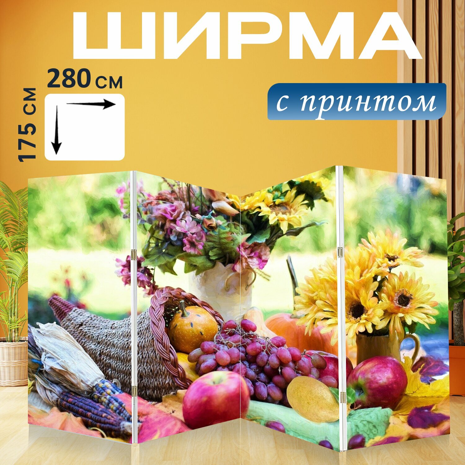 Ширма "Рог изобилия, благодарение, осень" перегородка для зонирования комнаты с принтом 280x175 см. на холсте интересное: