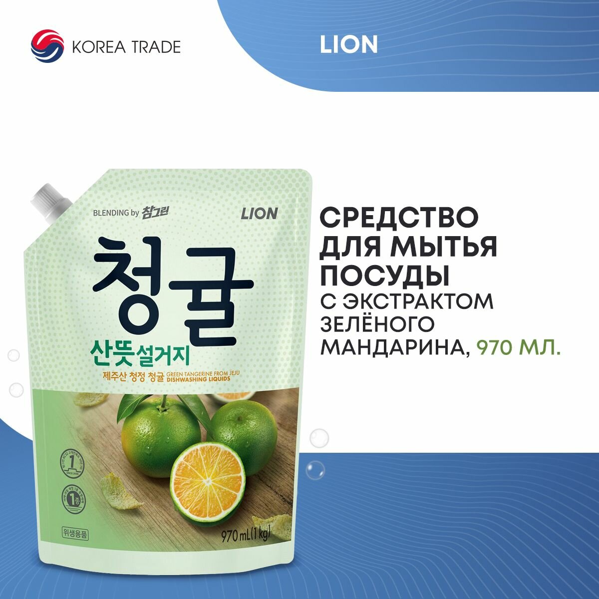 Купить Средство для мытья посуды Lion Chamgreen Зеленый цитрус, мягкая упаковка, 970 мл