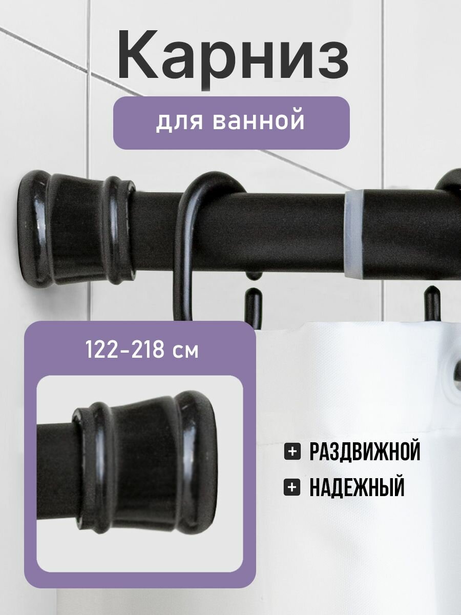 Карниз для ванной комнаты телескопический, 122-218 см, цвет чёрный