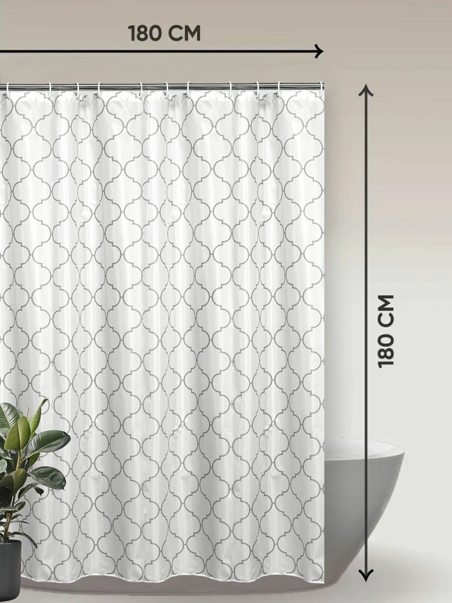 Штора занавеска для ванной Bath Plus 180x200 см тканевая Moon Dot III белая