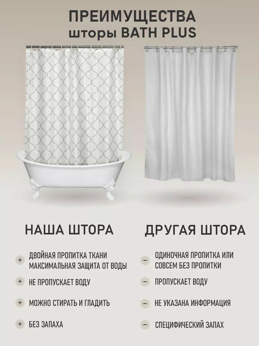 Купить Штора занавеска для ванной Bath Plus 180x180 см тканевая Тaberg серый