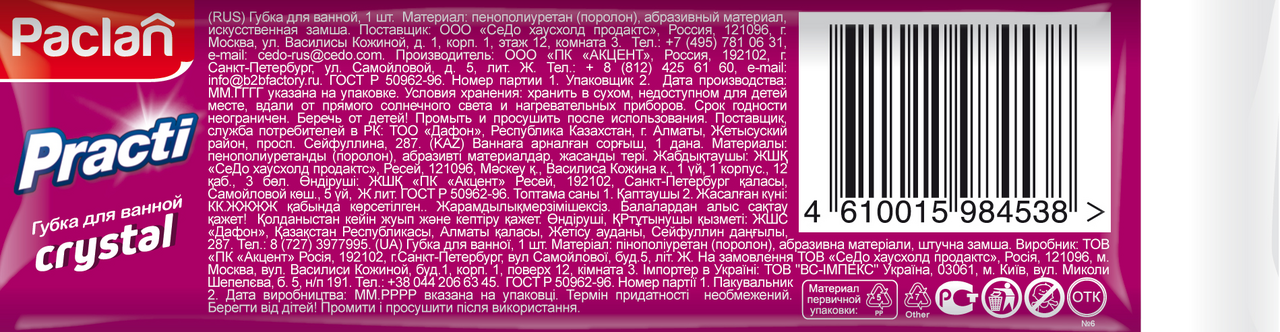 Губка для ванной Paclan Practi Crystal 1 шт