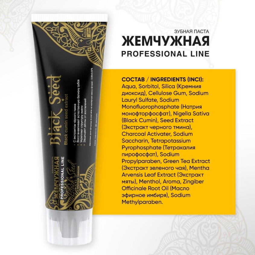 Зубная паста Жемчужная Professional Black Seed отбеливающая с экстрактом тмина и имбиря 100 мл