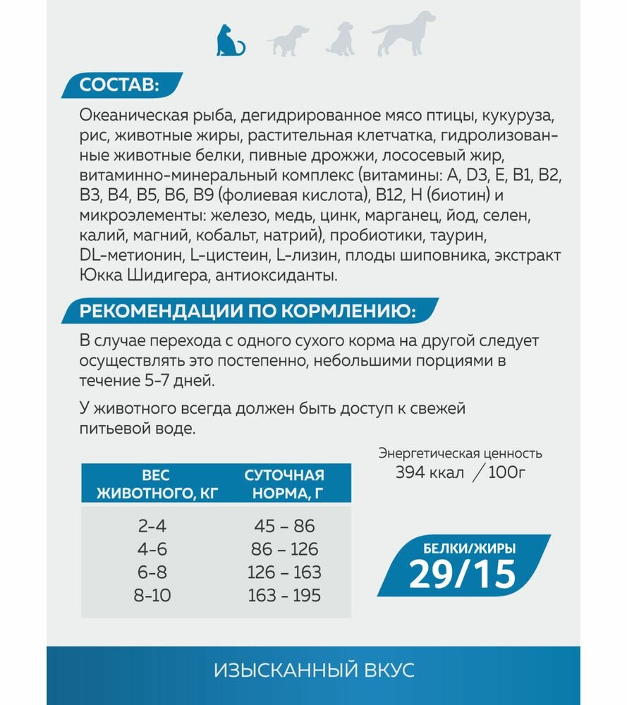 | Вкус | с океанической рыбой |